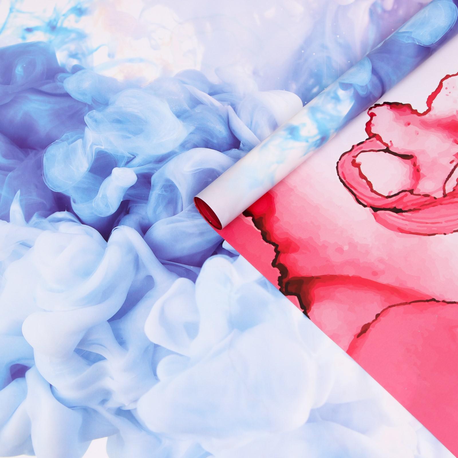 Бумага упаковочная глянцевая красно-голубая, двухсторонняя, 0,5 х 0,7 м