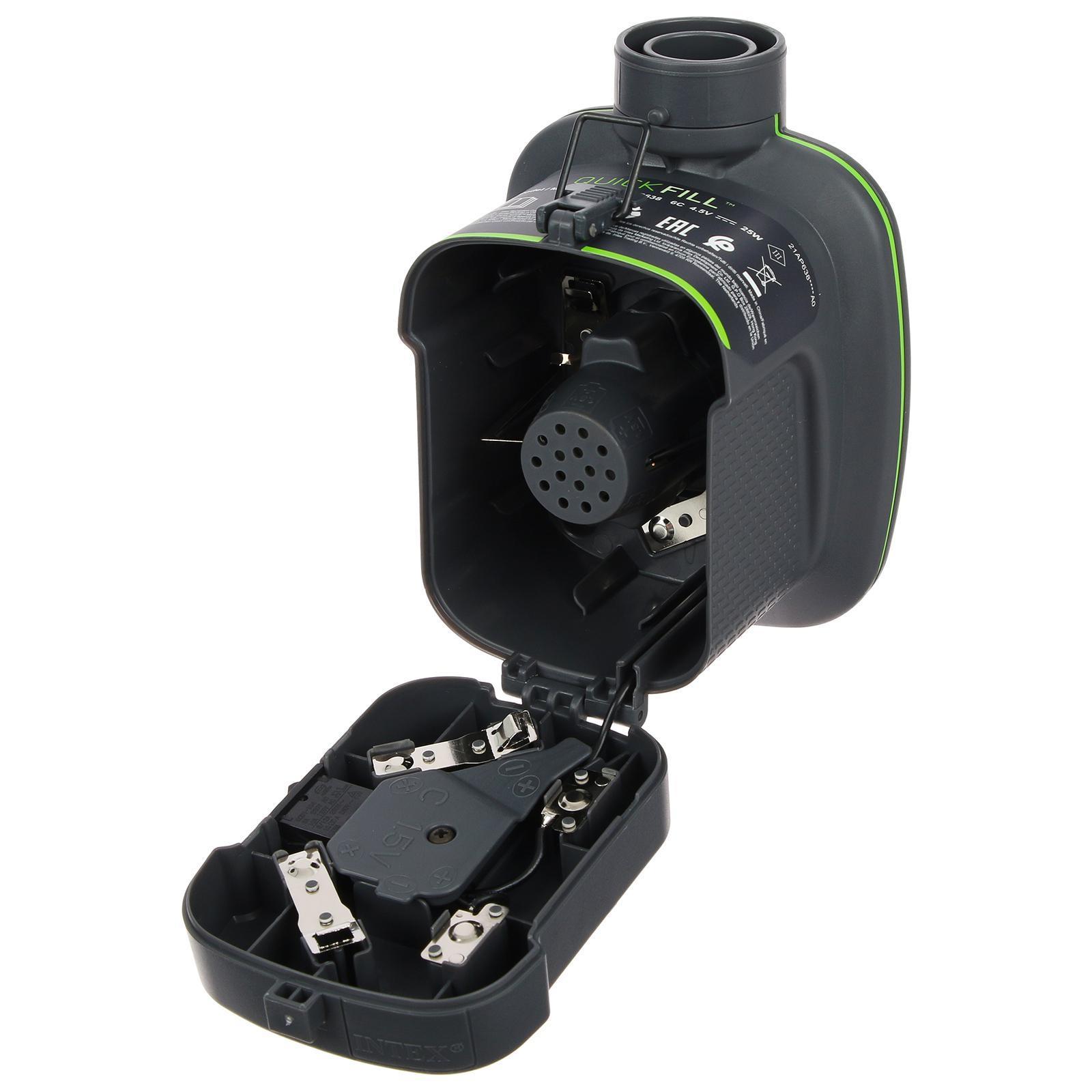 Для работы насоса необходимо 6 шт батареек или аккумуляторов Тип С. При помощи данного насоса можно накачивать или сдувать любые надувные изделия производства Intex. Насос удобно брать с собой в поездки и на природу, где нет электрической сети. В комплекте 3 насадки. Размер: 11 см × 15 см × 13 см. Продуктивность - 420л/мин.
