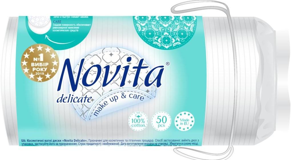 Відчуйте м'який дотик найніжнішої бавовни за допомогою чудових ватних дисків виробництва української компанії Novita Delicate. Косметичні диски з двосторонньою поверхнею, виготовлені з натуральної бавовни високої якості, приємно здивують привабливим дизайном, подарують максимальний комфорт у процесі використання і забезпечать чудовий результат.