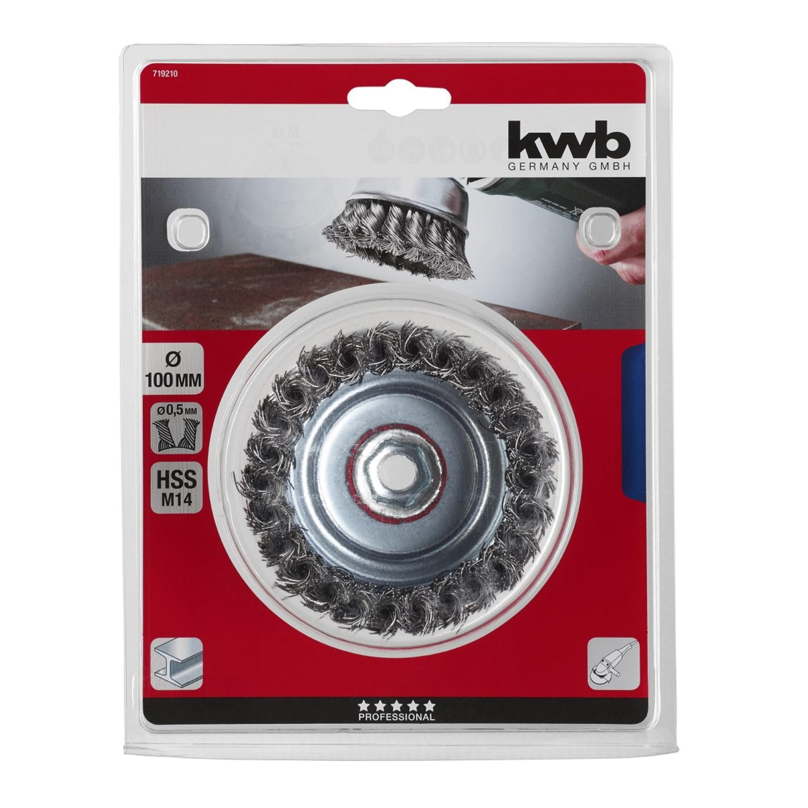 Щетка чашечная витая KWB, d=100 мм, проволока витая d=0.5, крепление М14, сталь HSS