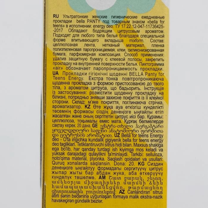 BELLA Ультратонкие ежедневные прокладки PANTY energy deo по 20шт