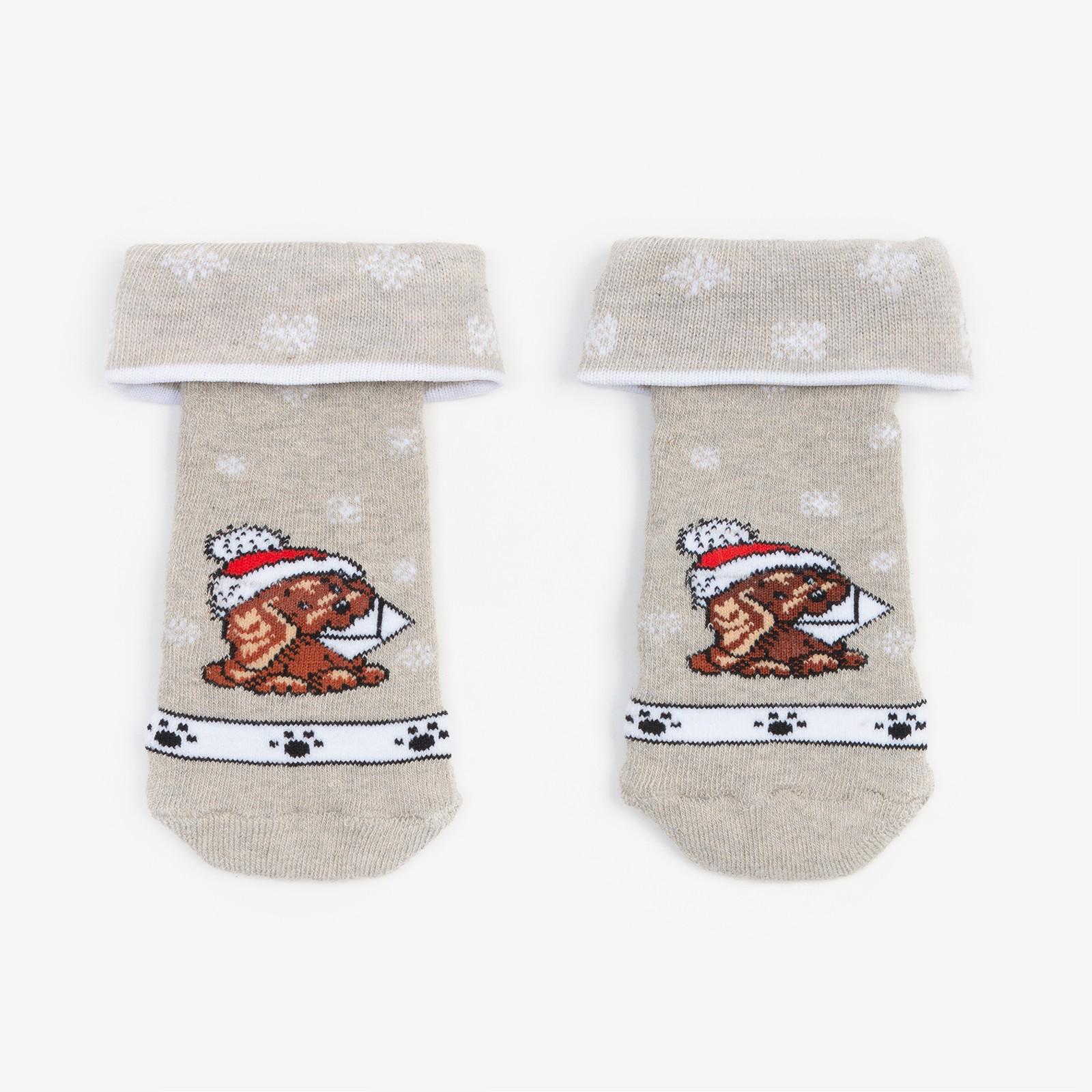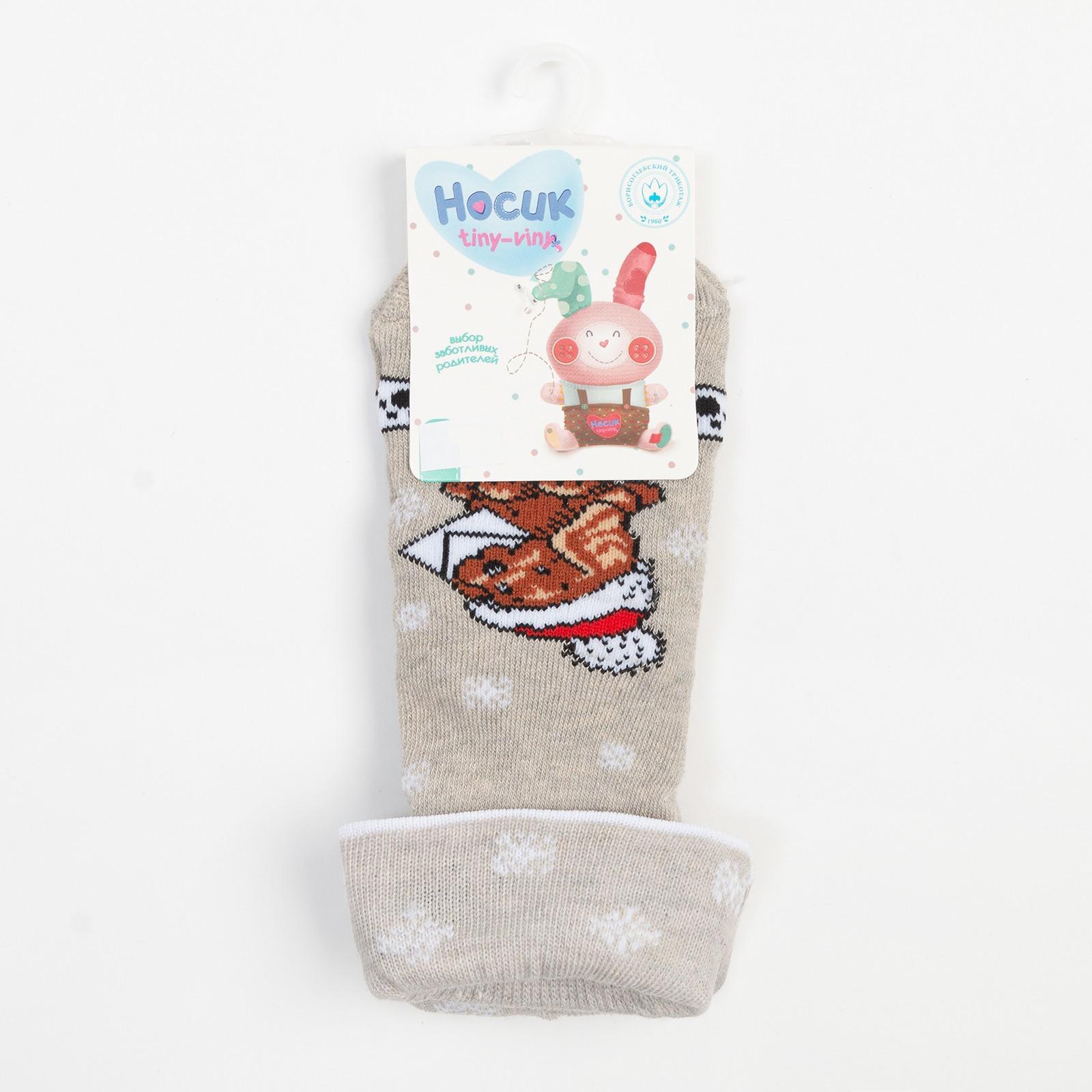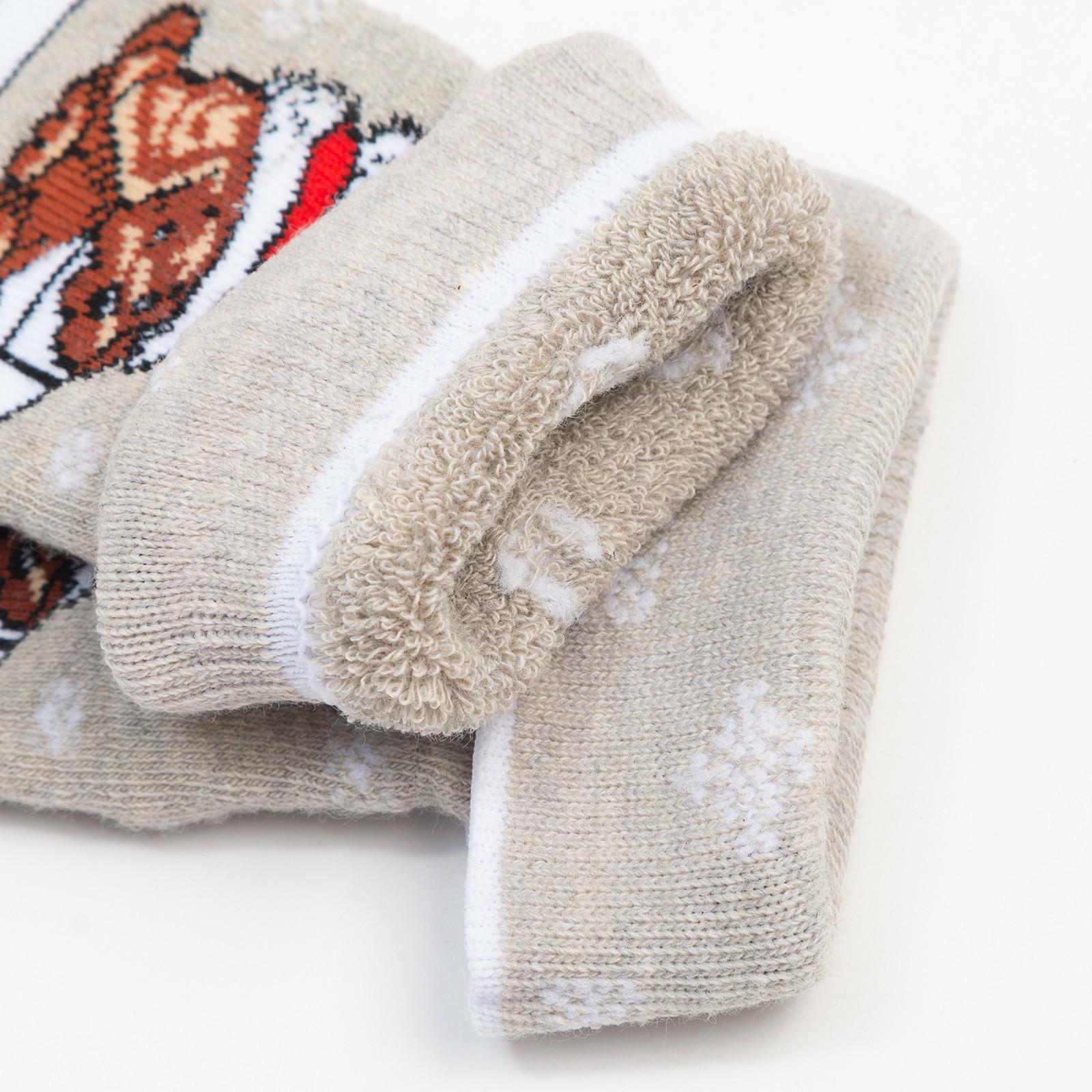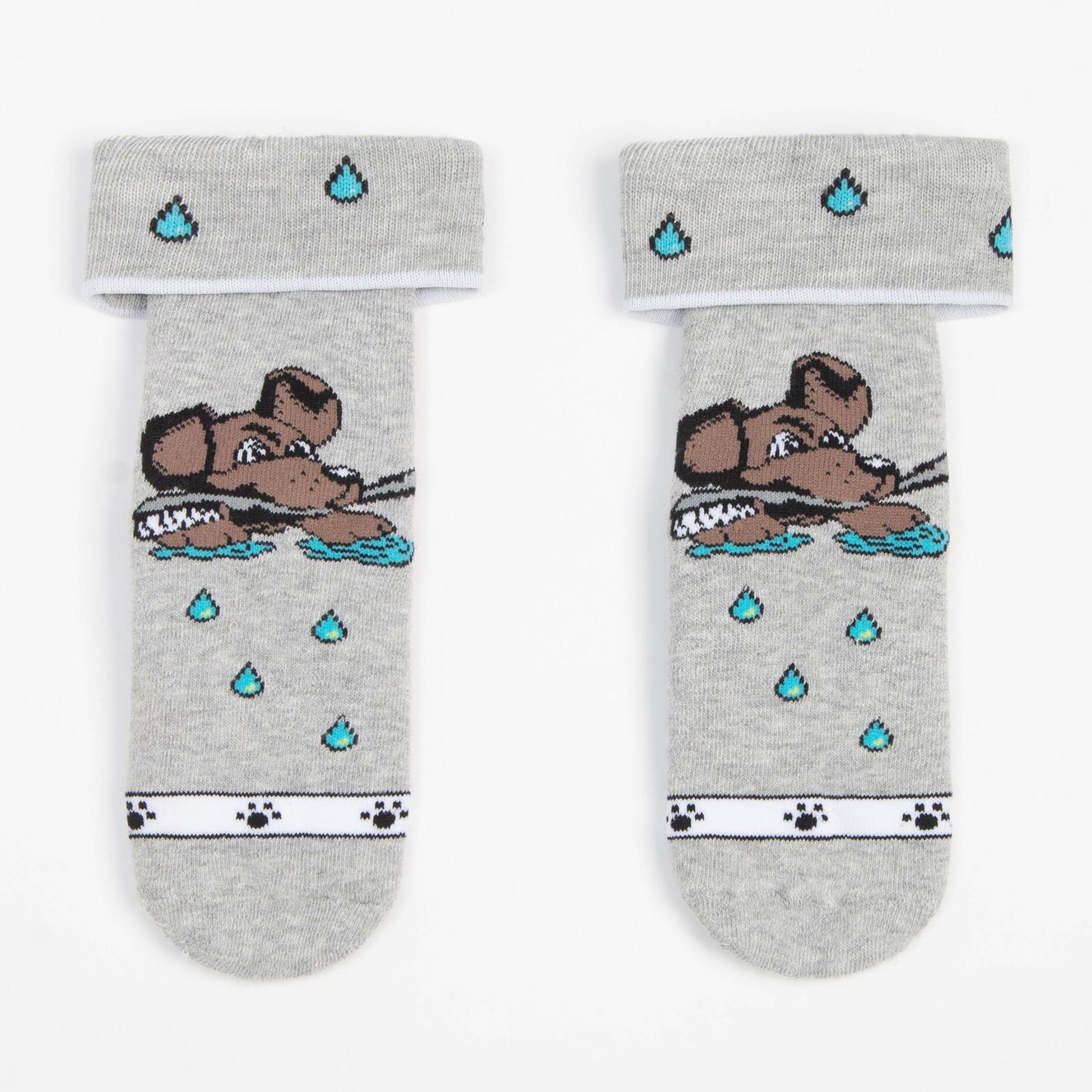 Носки детские махровые, цвет серый, принт МИКС, размер 16-18