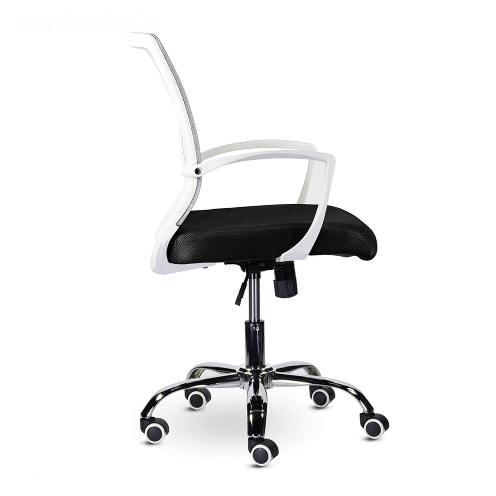 Кресло офисное BRABIX "Wings MG-306", пластик белый, хром, сетка, серое/черное, 532010