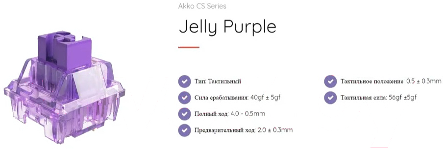 - Переключатели клавиатуры Akko CS Jelly Purple