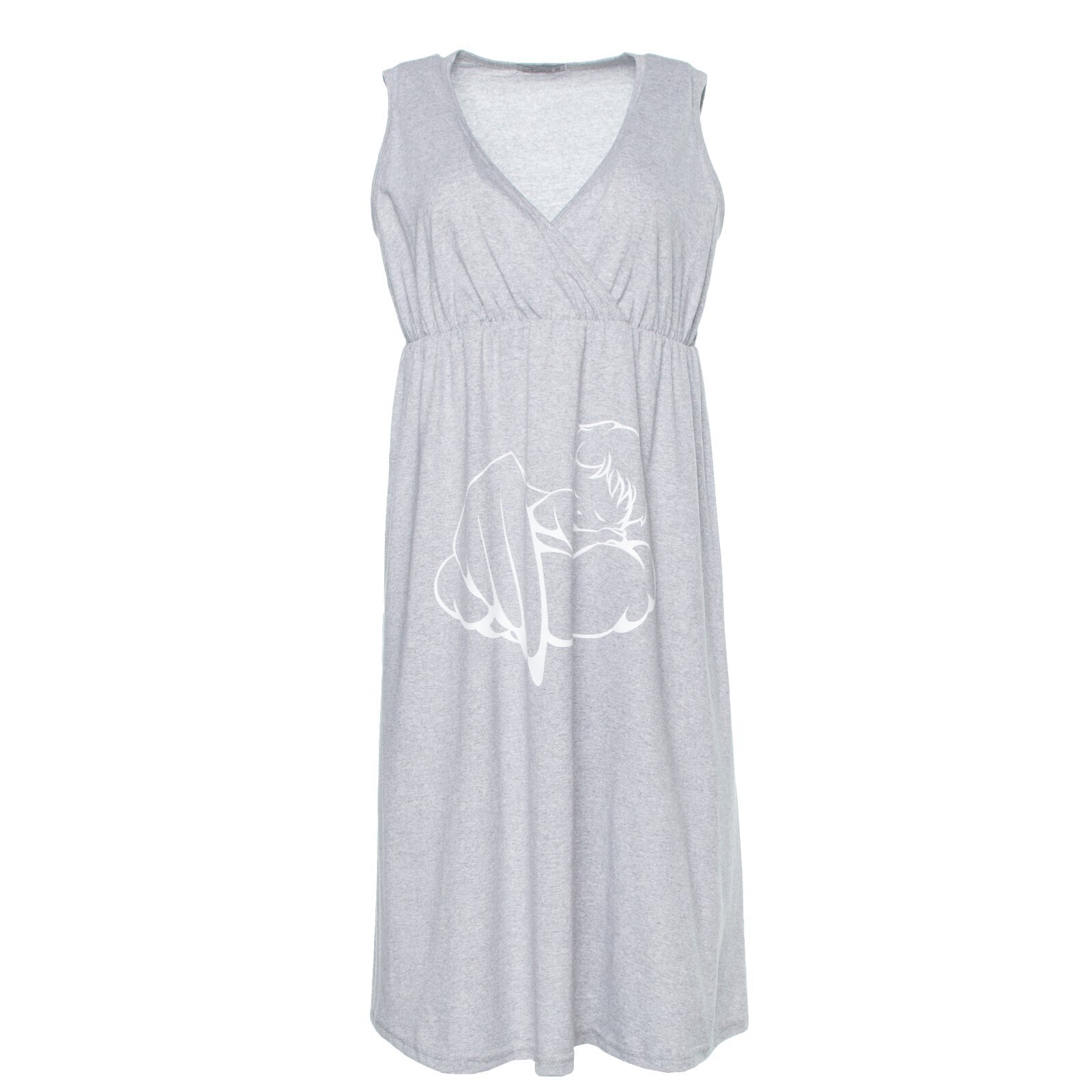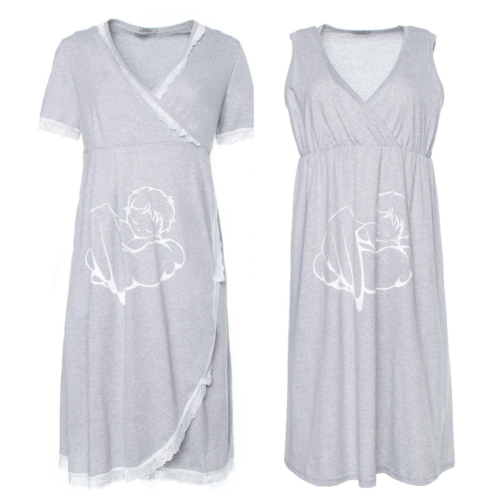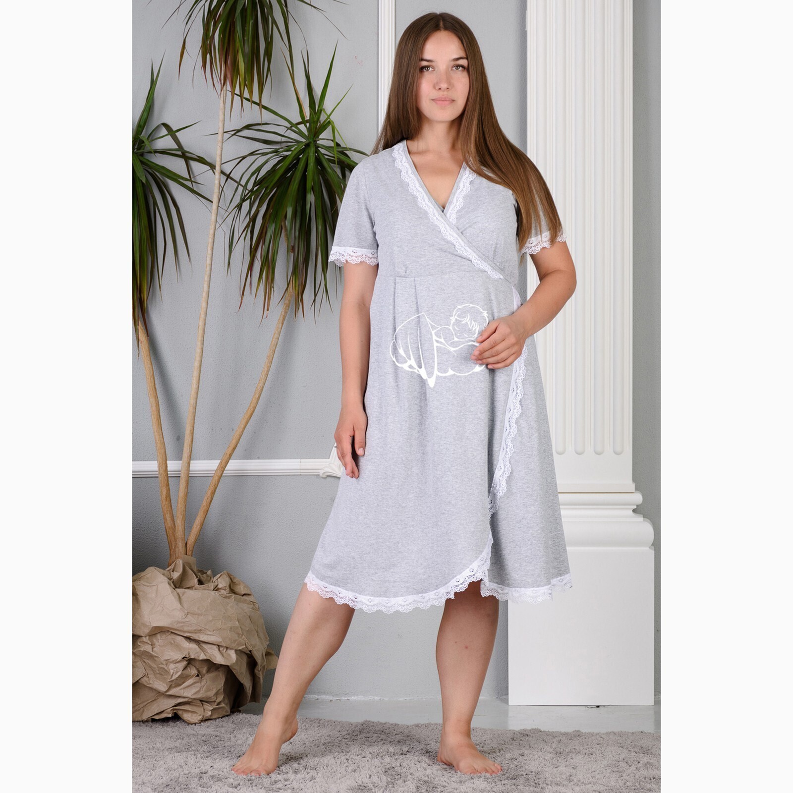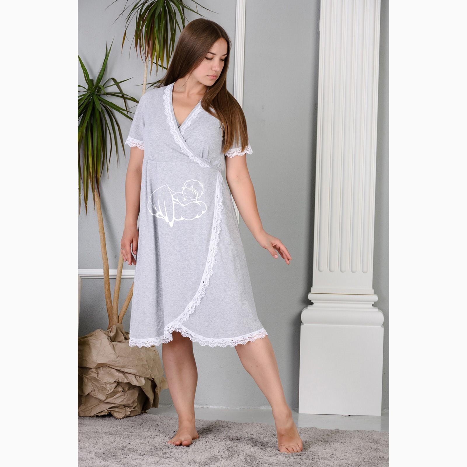 Комплект женский для беременных (пеньюар и сорочка), цвет серый, размер 56