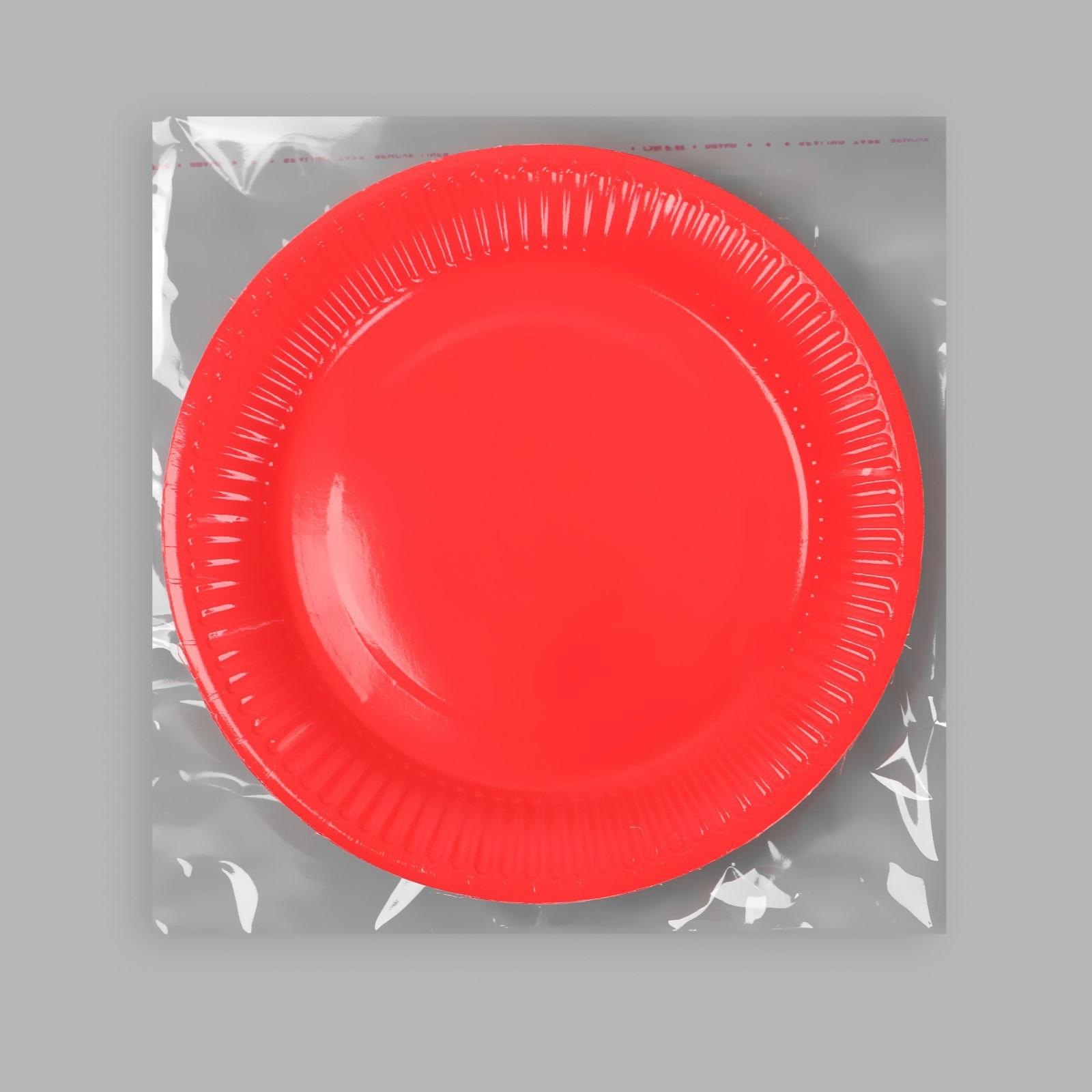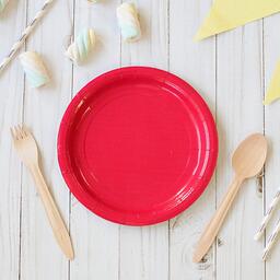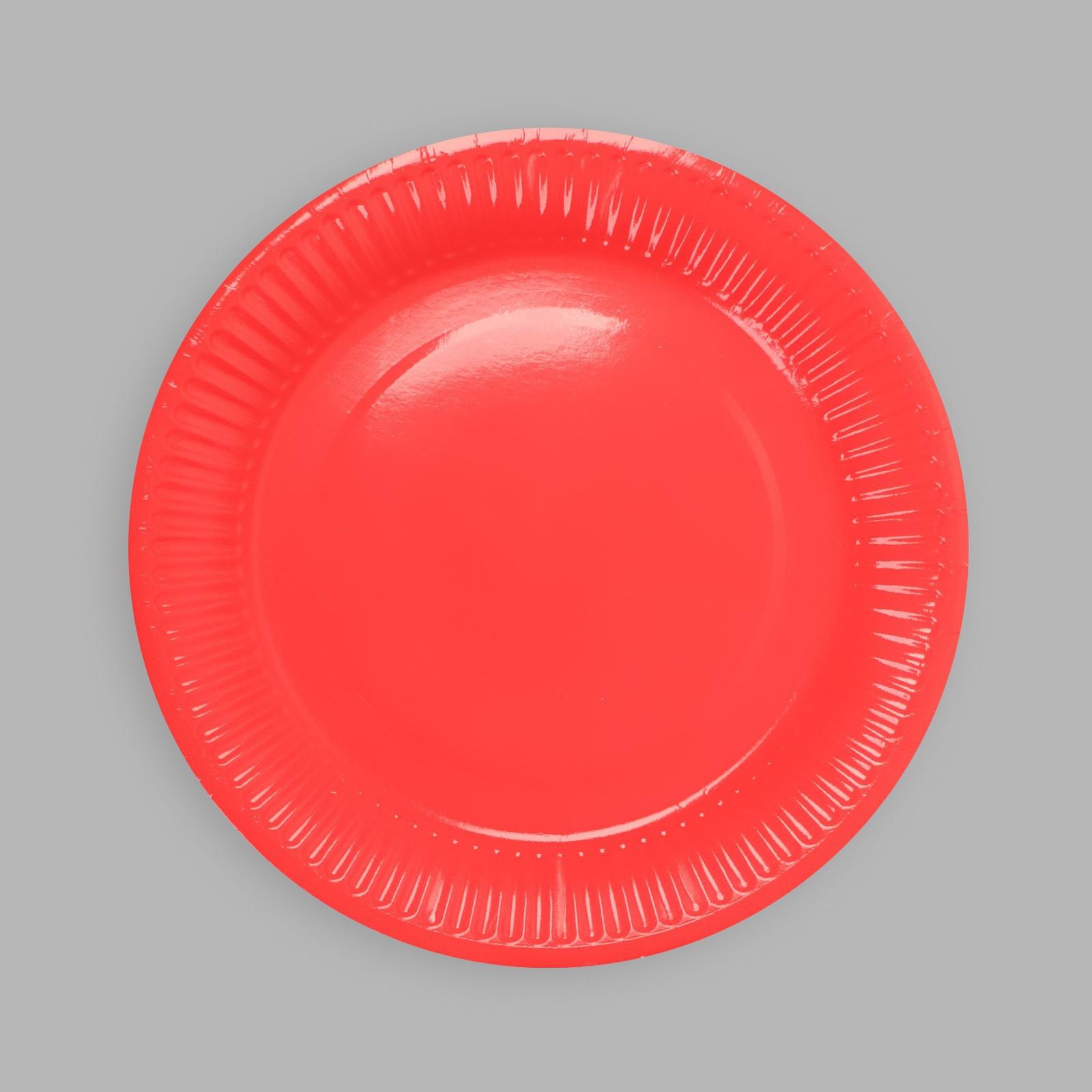 Тарелка бумажная, однотонная, 18 см, красный цвет