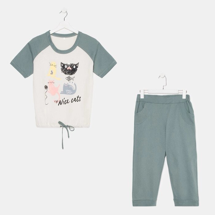 Комплект женский (футболка, бриджи), цвет зелёный, размер 46
