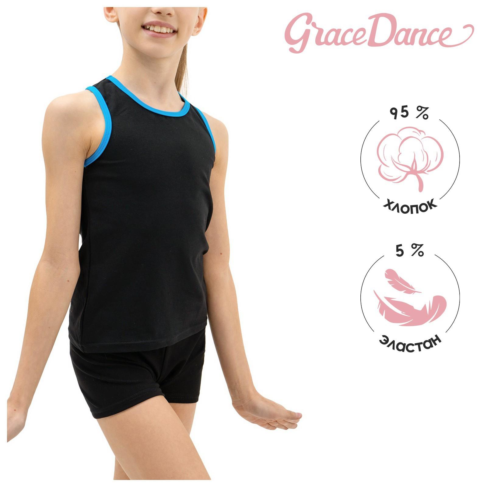 Майка-борцовка с окантовкой, размер 30, цвет чёрный/бирюзовый