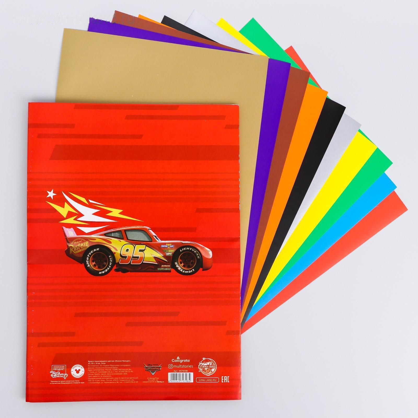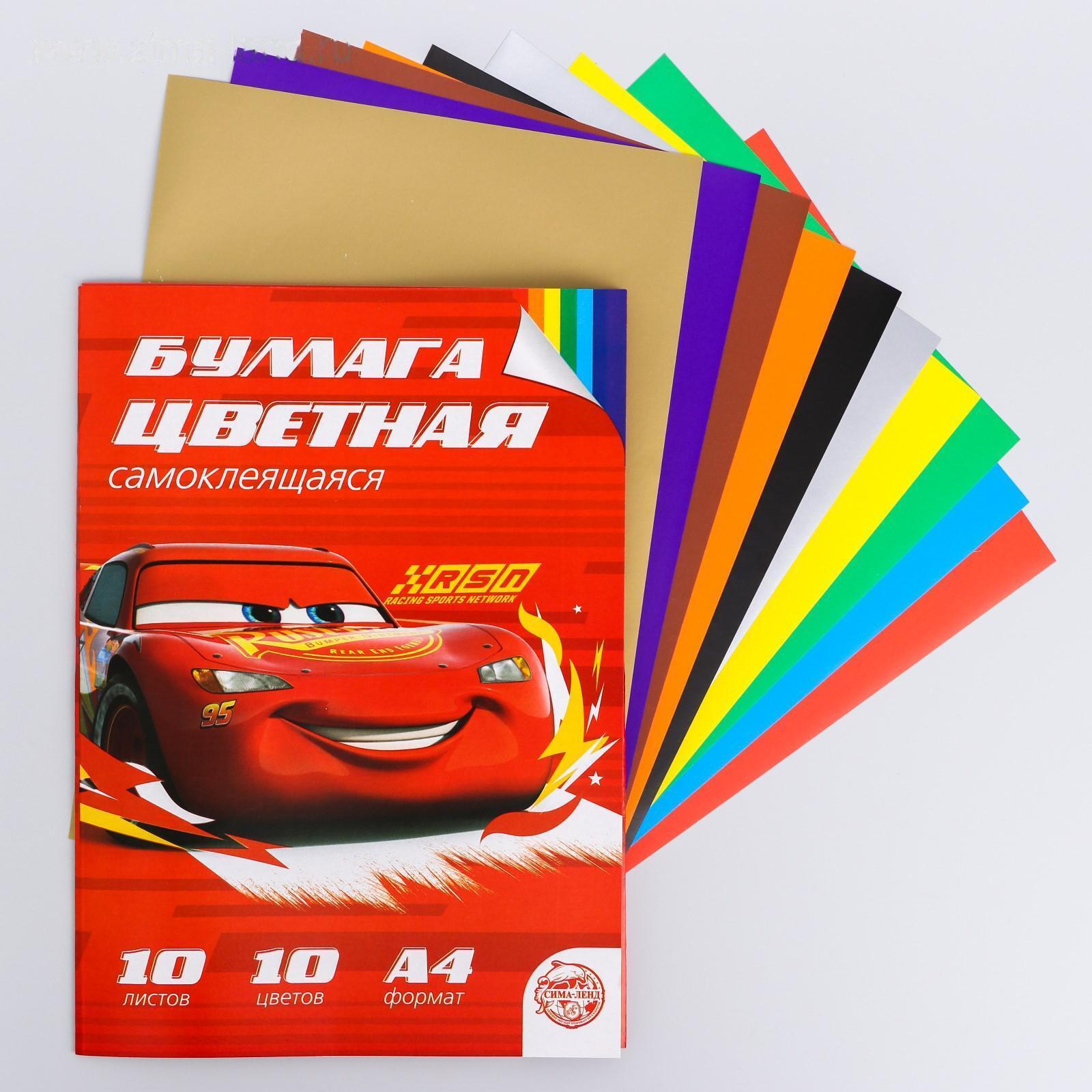 Бумага самоклеящаяся А4 10 листов 10 цветов, Тачки в папке