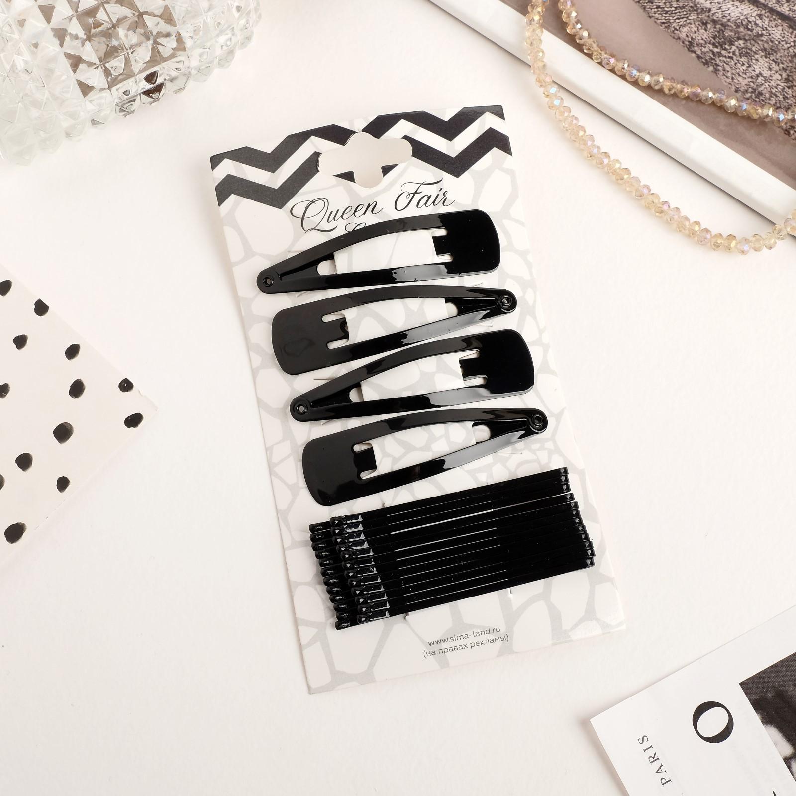Невидимка для волос "Классика" (4 зажима, 12 невидимок 6 см) чёрный