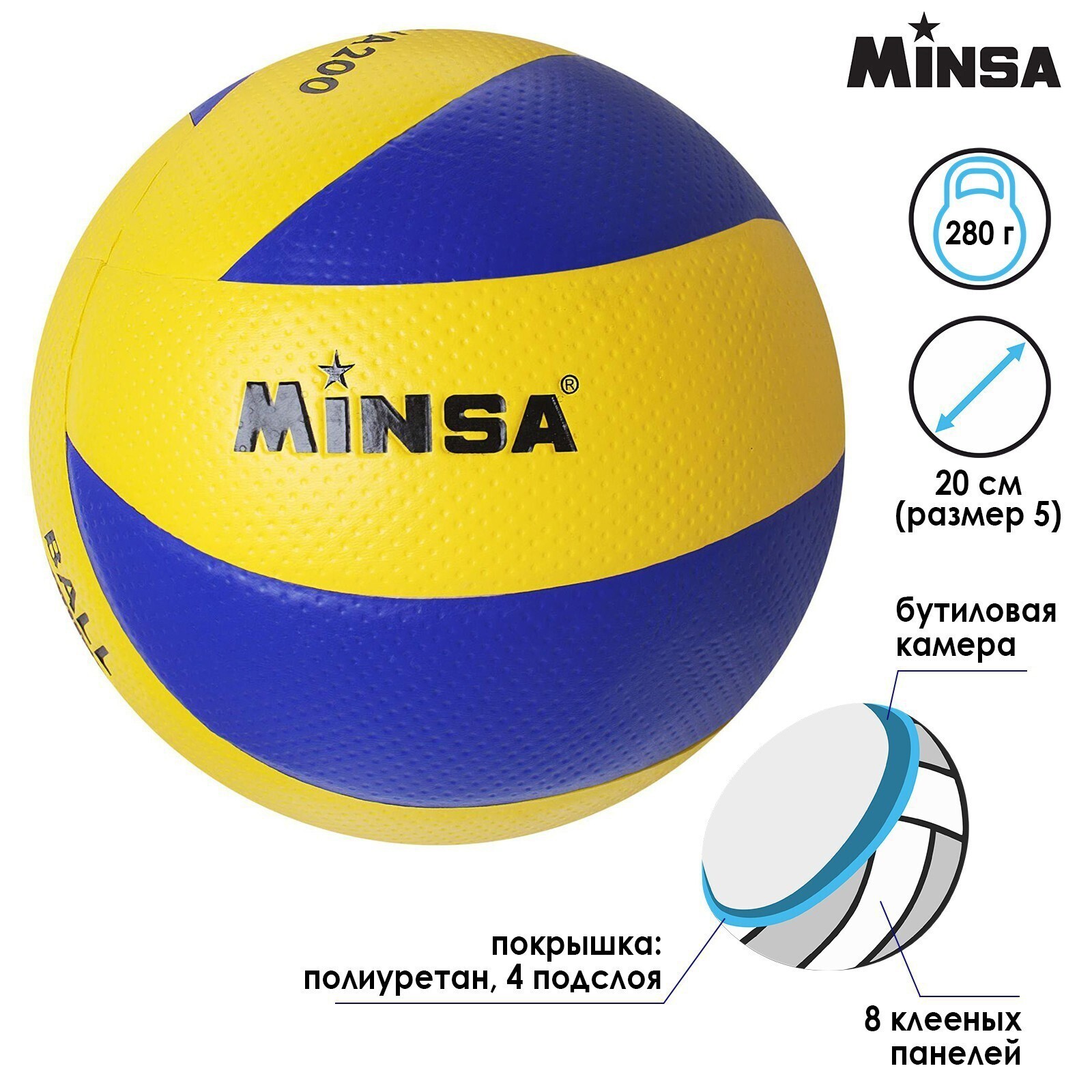 Мяч волейбольный MINSA, PU, клееный, 8 панелей, размер 5
