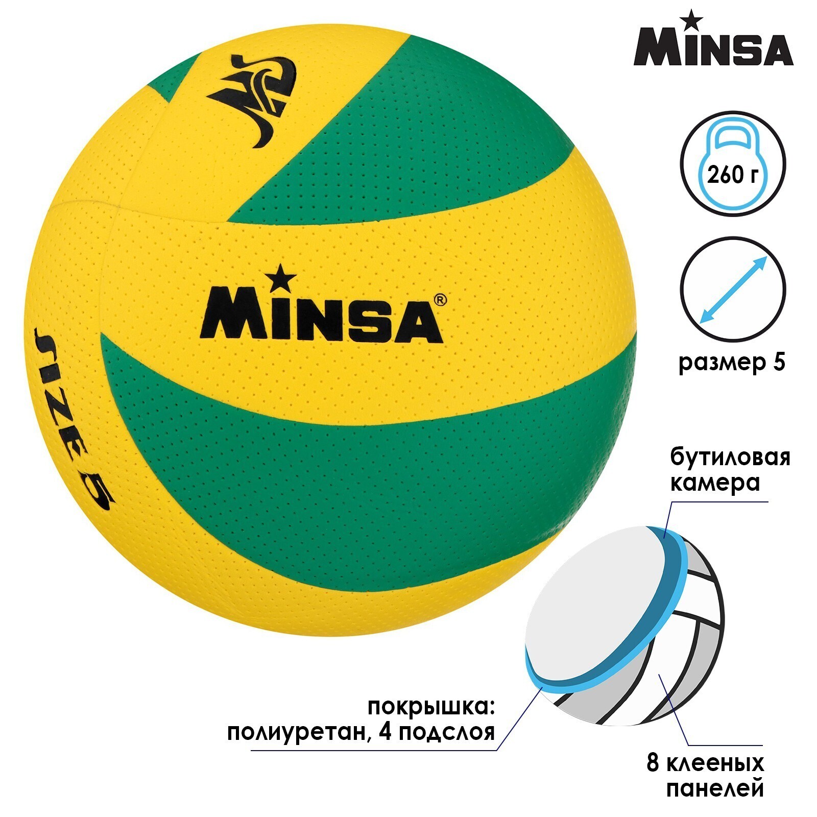 Мяч волейбольный MINSA, PU, клееный, 8 панелей, размер 5, 260 г
