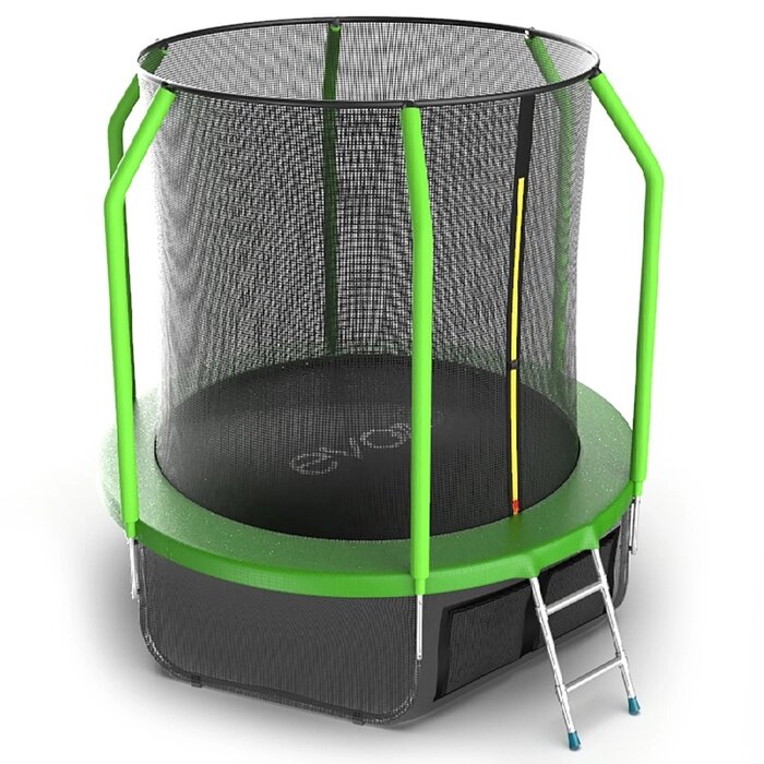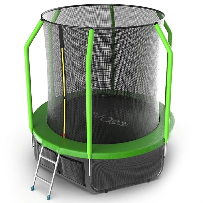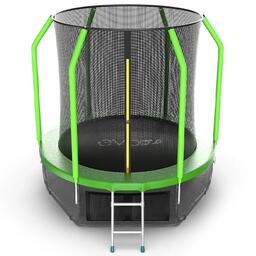 Батут EVO JUMP Cosmo 6 ft, d=183 см, с внутренней сеткой, нижней сеткой и лестницей, зелёный
