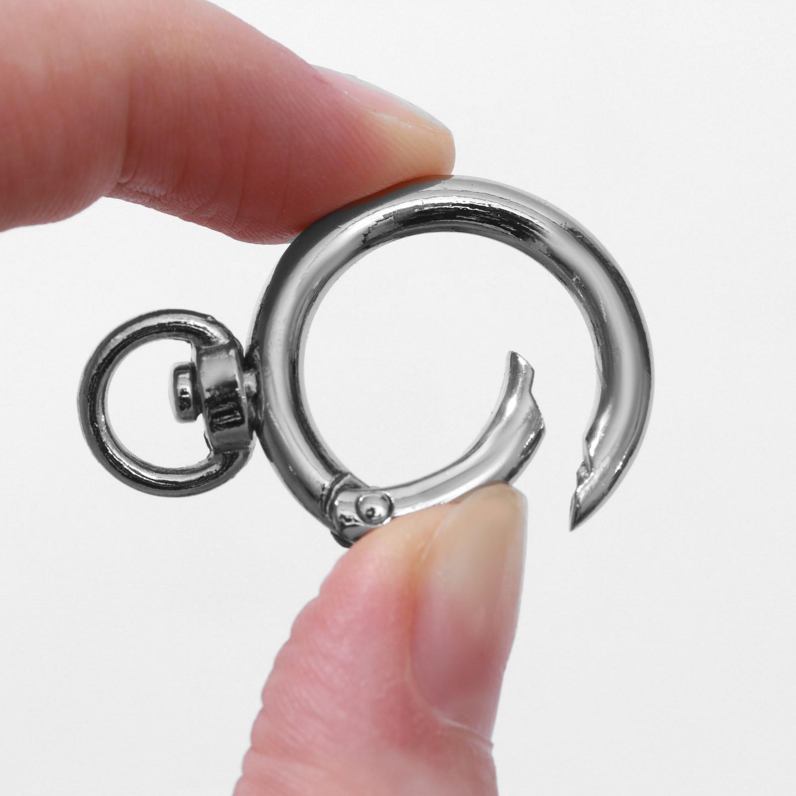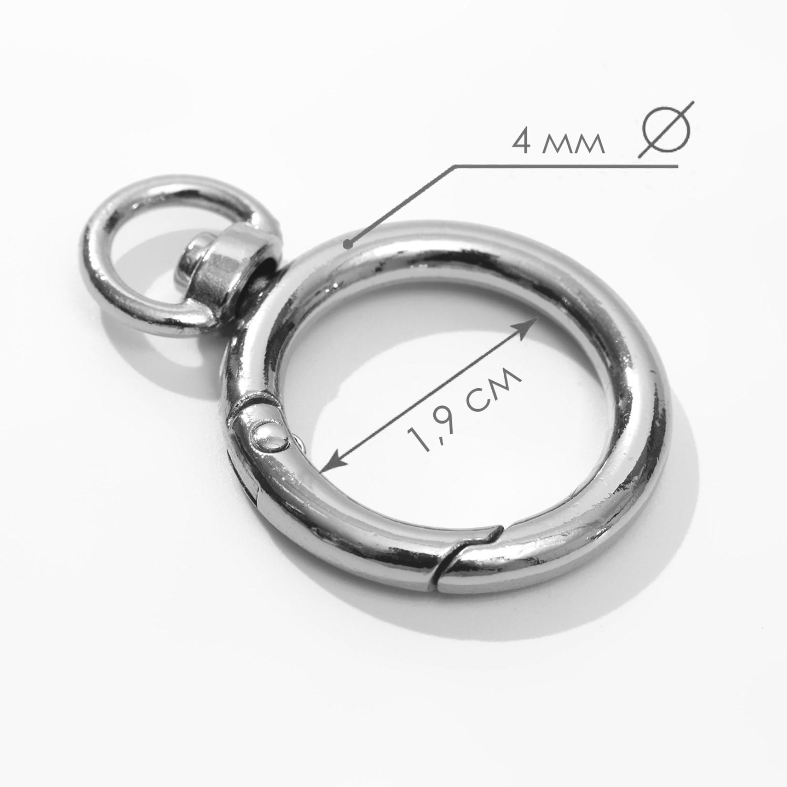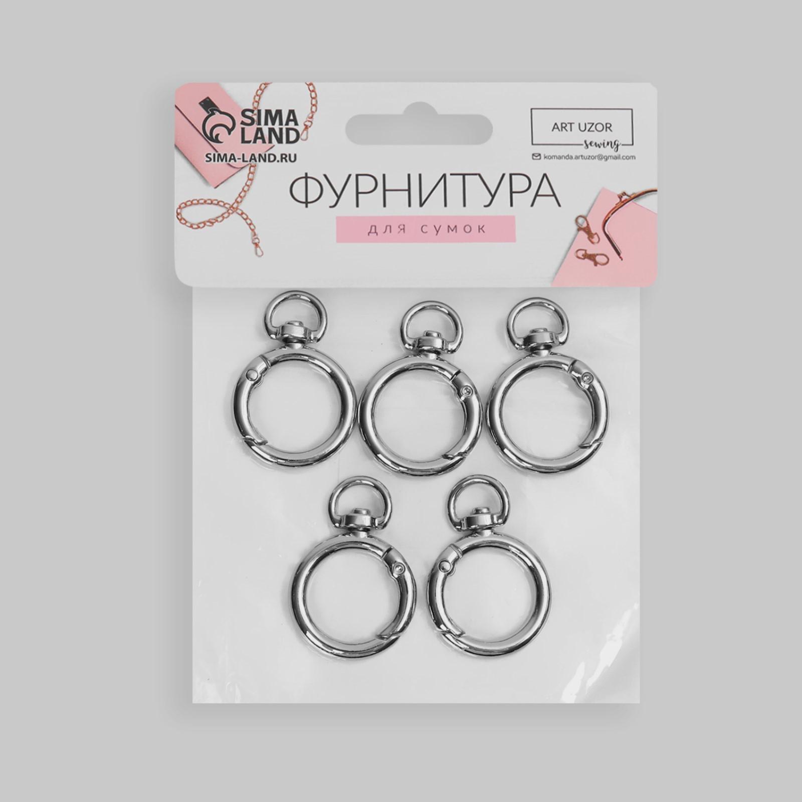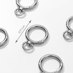 Кольцо-карабин, 39 × 27 мм, толщина - 4 мм, с креплением 9 × 2,2 мм, 5 шт, цвет серебряный
