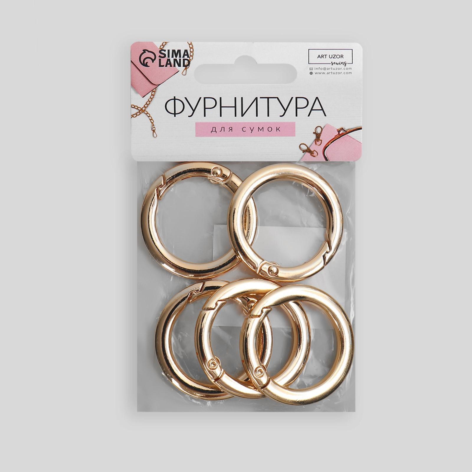 Кольцо-карабин плоский, d = 25/34 мм, толщина - 4,5 мм, 5 шт, цвет золотой