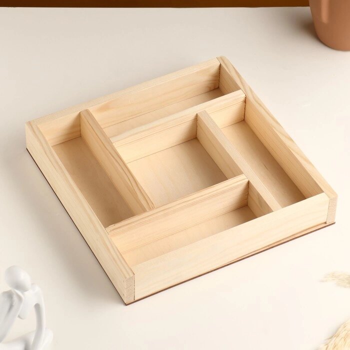 Кашпо деревянное "Зигзаг" 5 отсеков 25х25х4 см натуральный