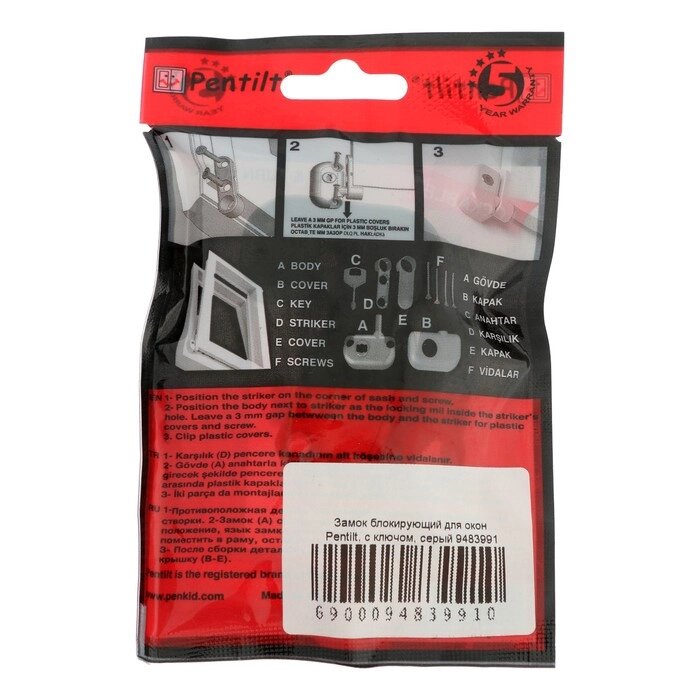 Замок блокирующий для окон Pentilt, с ключом, серый