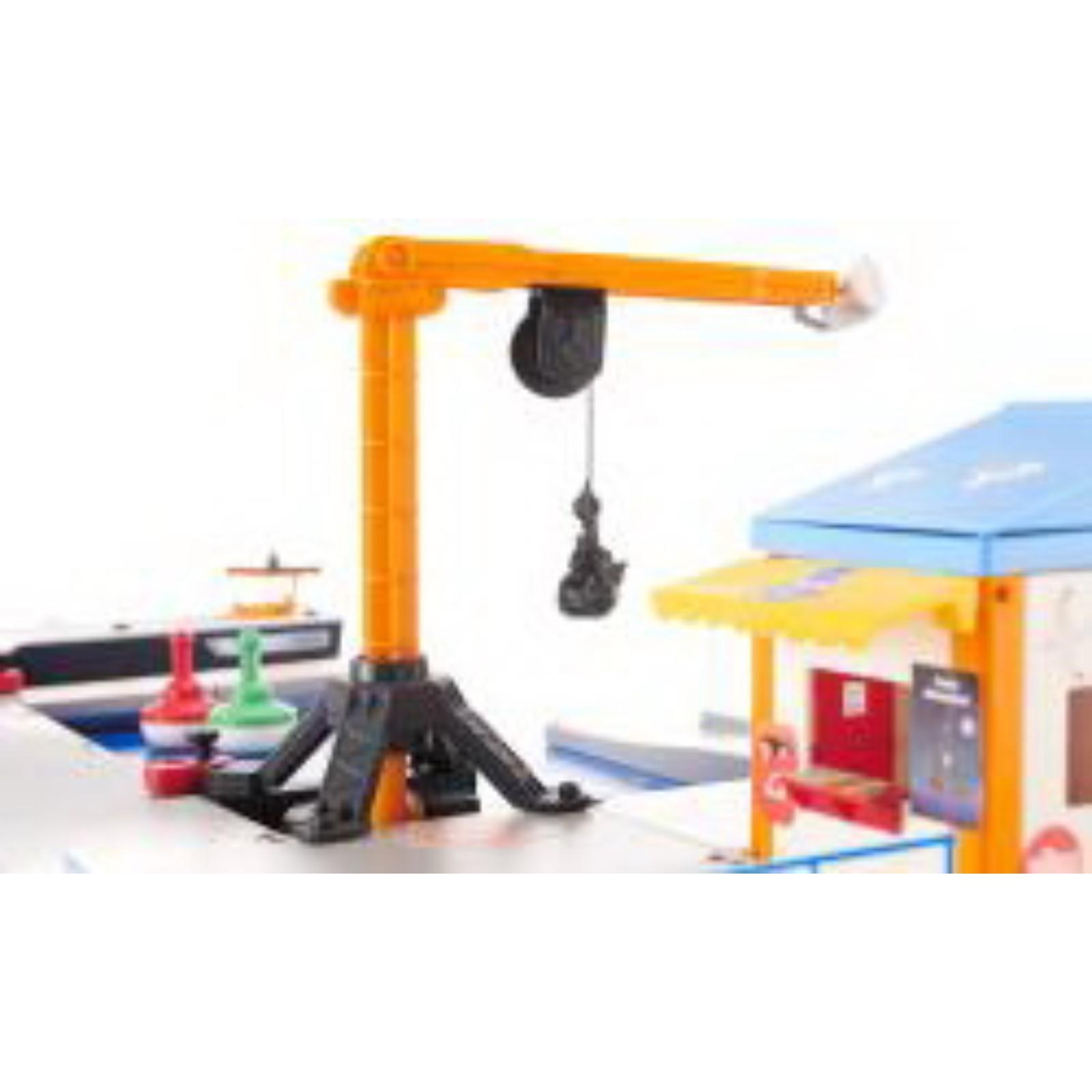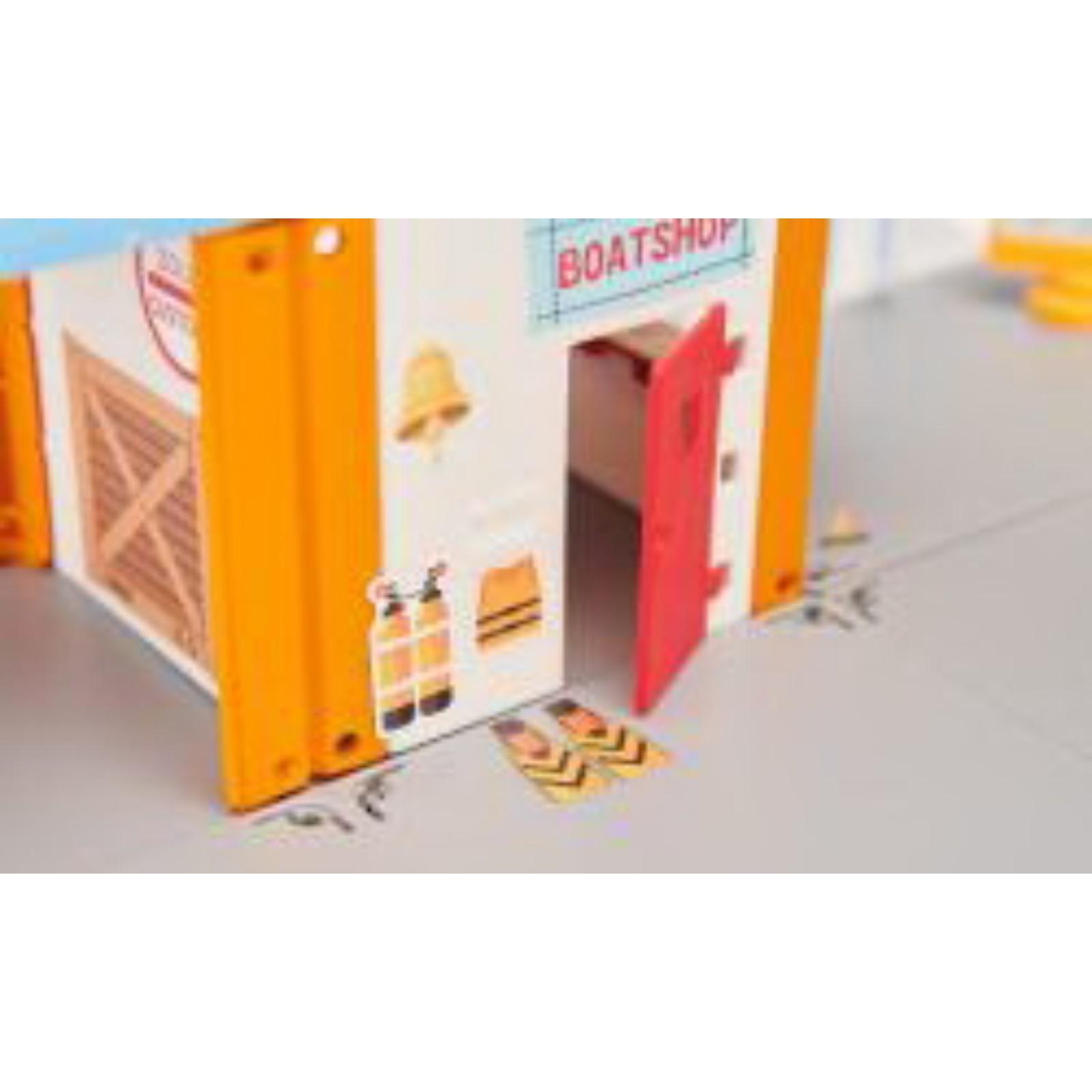 На пристани SikuWorld всегда есть чем заняться. Посадочная площадка, состоящая из отдельных частей, может быть построена разными способами и украшена наклейками. Лодки можно спускать в воду и доставать через рампу. Судовой гудок сигнализирует об окончании обеденного перерыва для докеров. Достаточно нескольких умелых действий, чтобы надёжно привязать лодку к выступам на стене причала. Строительный кран с ходовой тележкой начинает движение, ведь груз, привезённый на корабле, должен быть выгружен до отплытия судна. Пристань SikuWorld состоит из рабочей лодки, буёв, двух флагов, киоска с закусками, причала с входами и выходами, двух пластиковых панелей синего цвета, крана и ящиков. Ящики можно открывать, заполнять. Пристань SikuWorld можно использовать отдельно, но она также является прекрасным дополнением к другим наборам из SikuWorld Water.