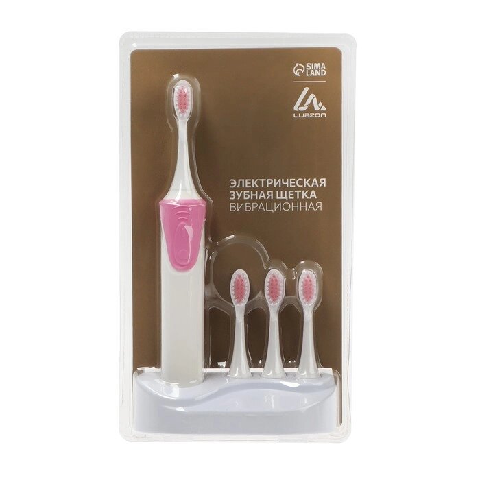 Электрическая зубная щётка Luazon LP-009, вибрационная, 8500 дв/мин, 4 насадки, 2хАА, розовая