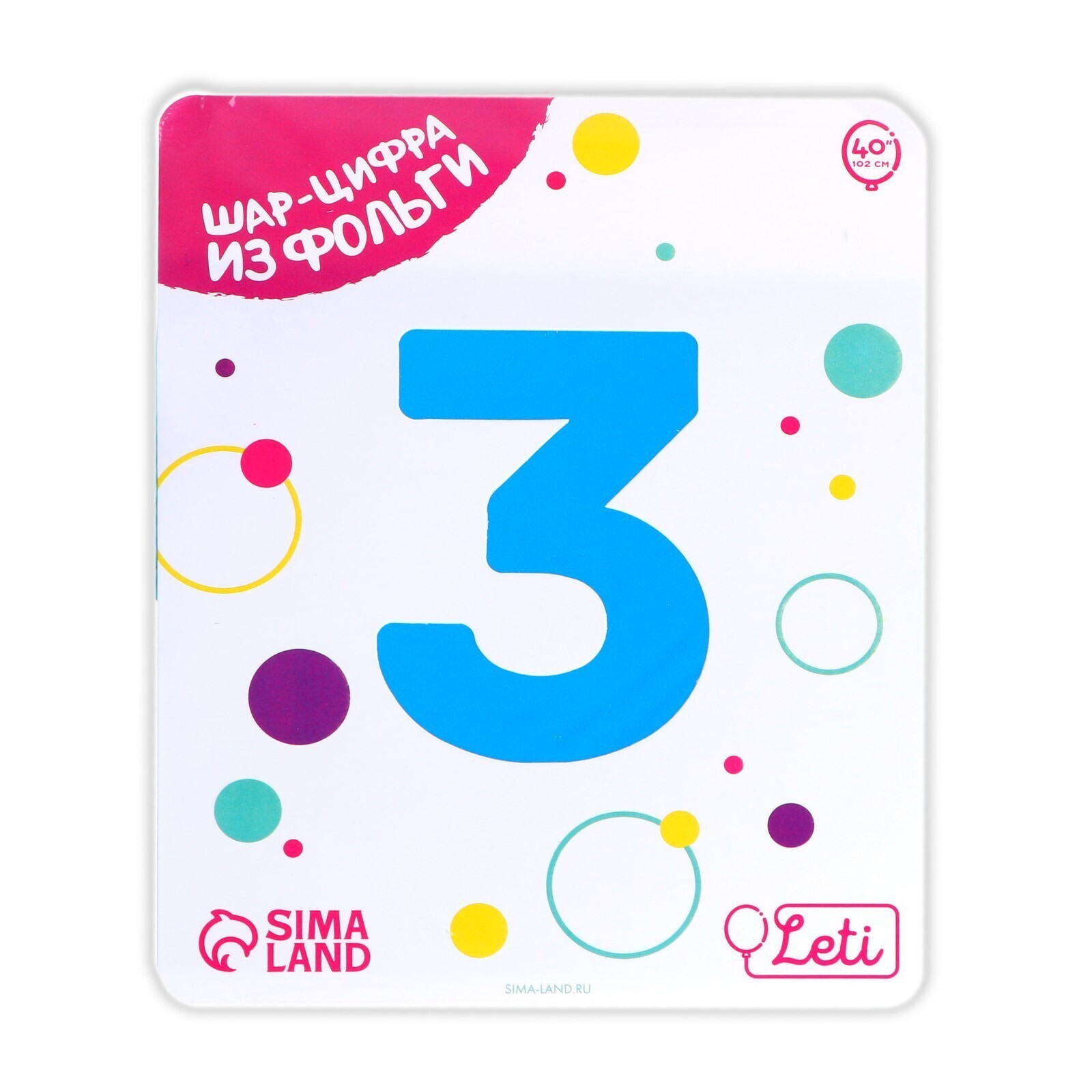 Шар фольгированный 40" «Цифра 3», цвет синий Slim