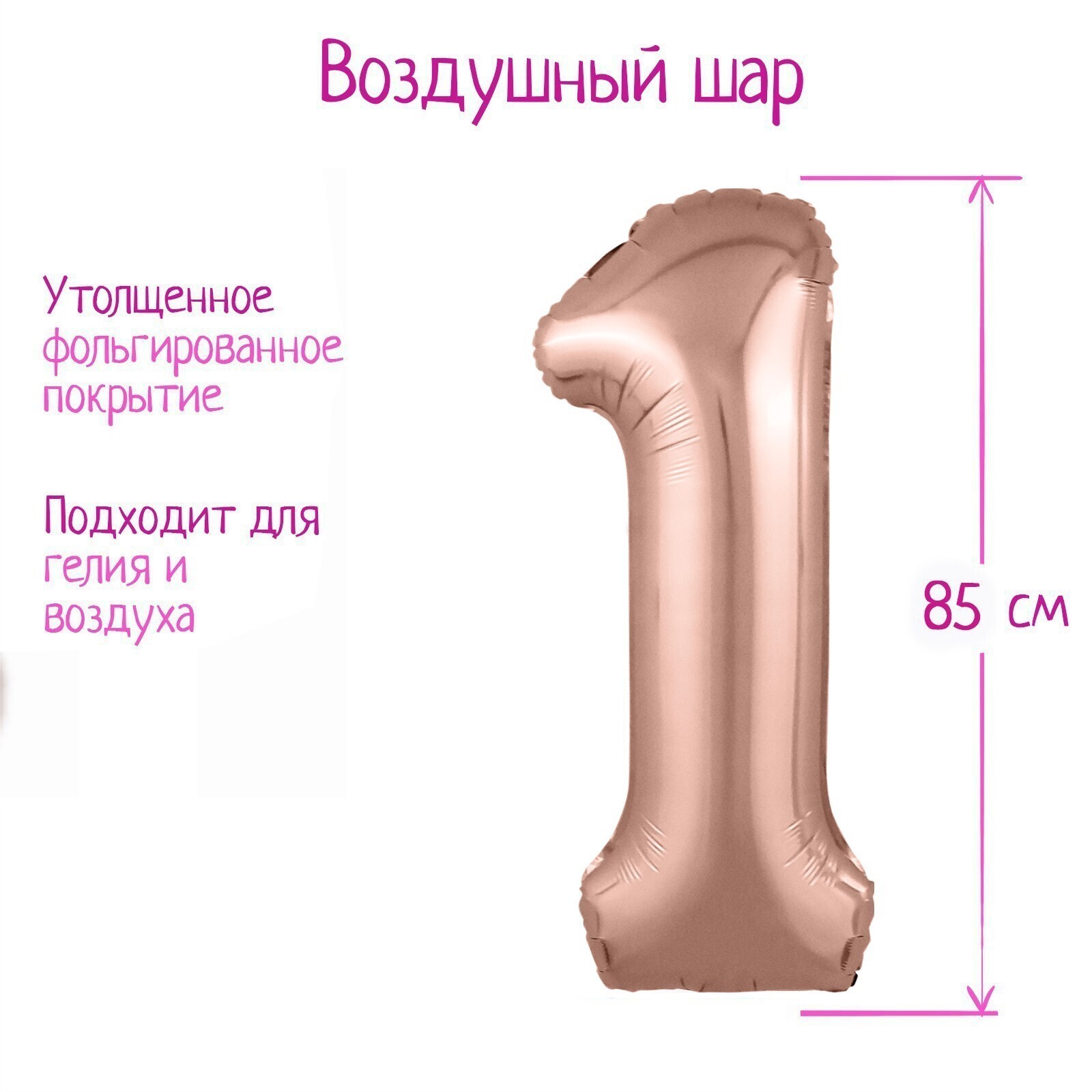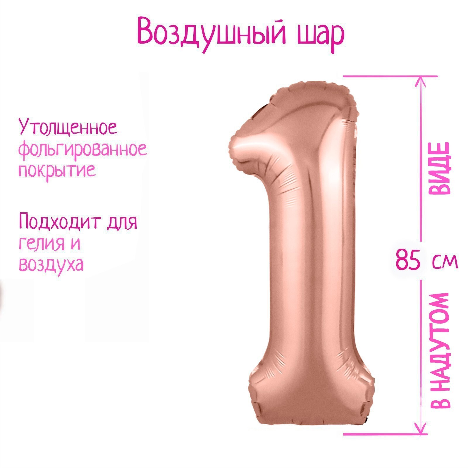 Шар фольгированный 40" «Цифра 1», цвет розовое золото Slim