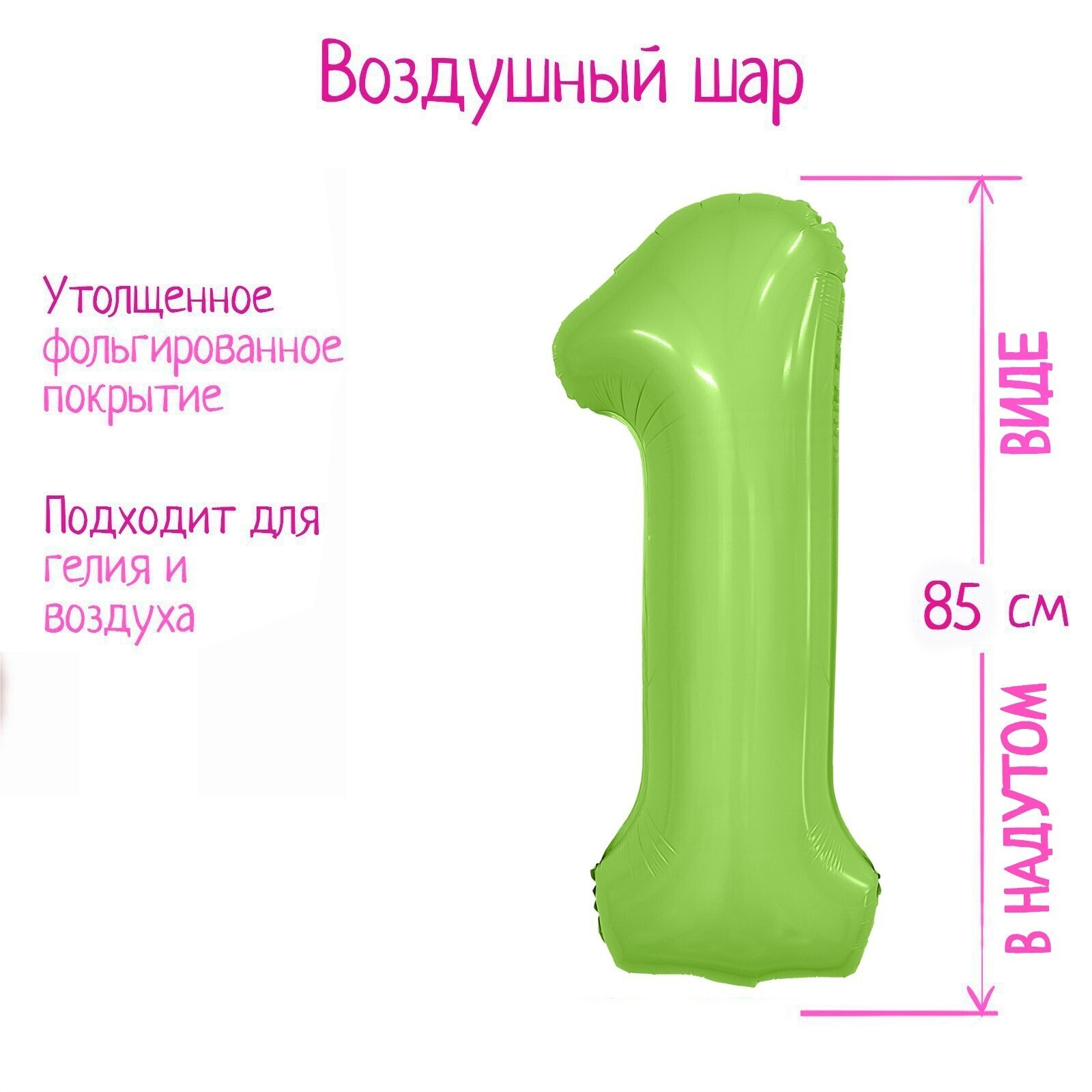 Шар фольгированный 40'' цифра 1, Slim, Мистик фисташка