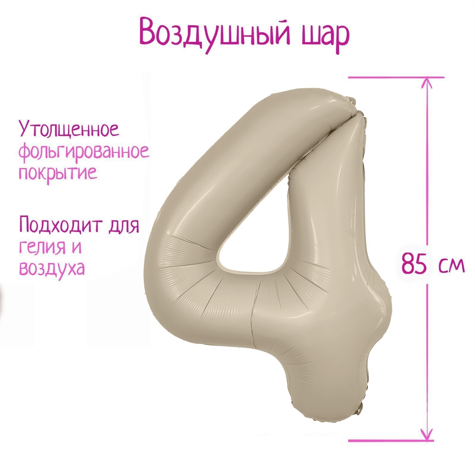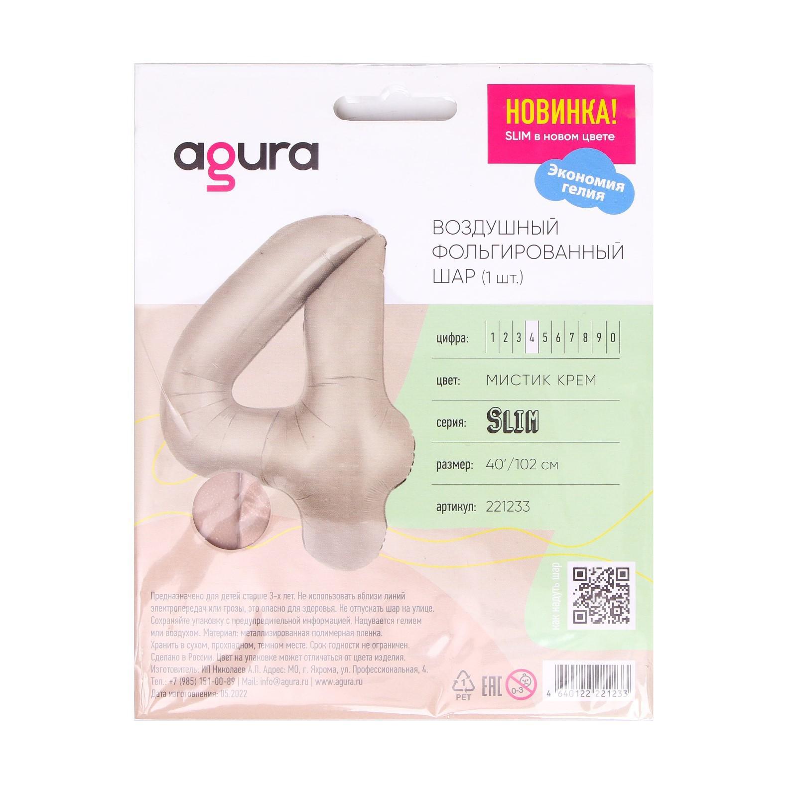Шар фольгированный 40" «Цифра 4», мистик крем Slim