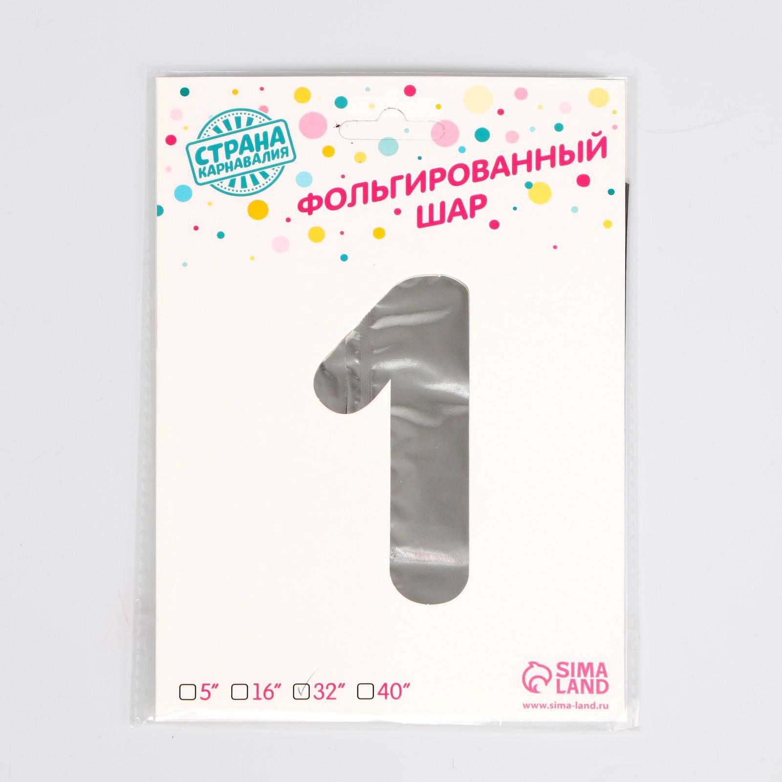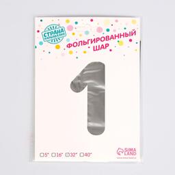 Шар фольгированный 32" «Цифра 1», цвет серебряный