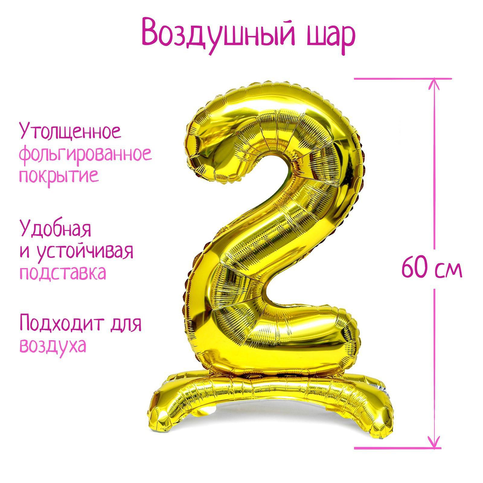 Шар фольгированный 32" «Цифра 2», на подставке, цвет золото