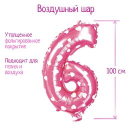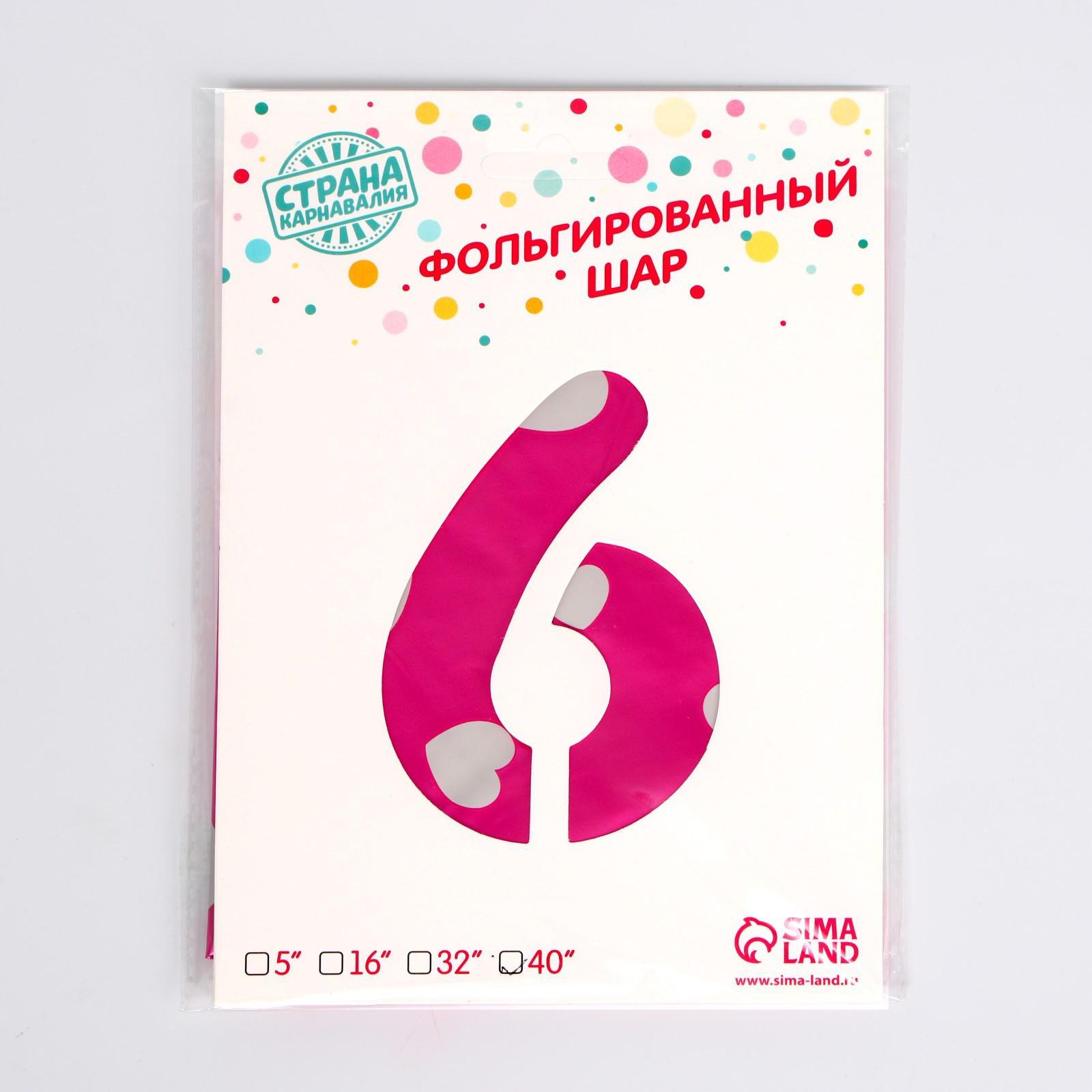 Шар фольгированный 40", цифра 6, сердца, индивидуальная упаковка, цвет розовый