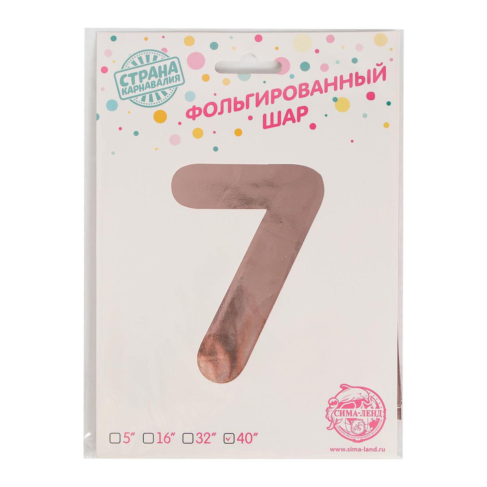 Шар фольгированный 40" Цифра 7, индивидуальная упаковка, цвет розовое золото, 1 шт.