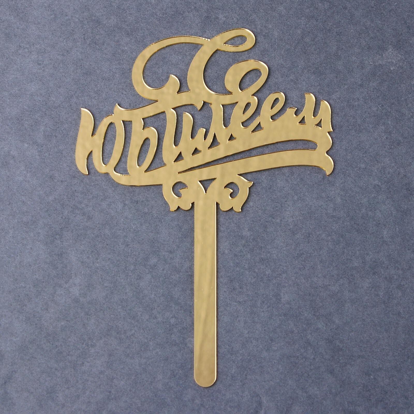 Топпер в торт «С юбилеем», акрил, цвет золотой