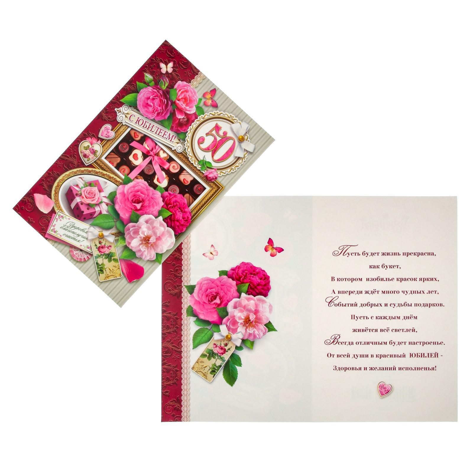 Открытка "С Юбилеем! 50" конфеты, цветы