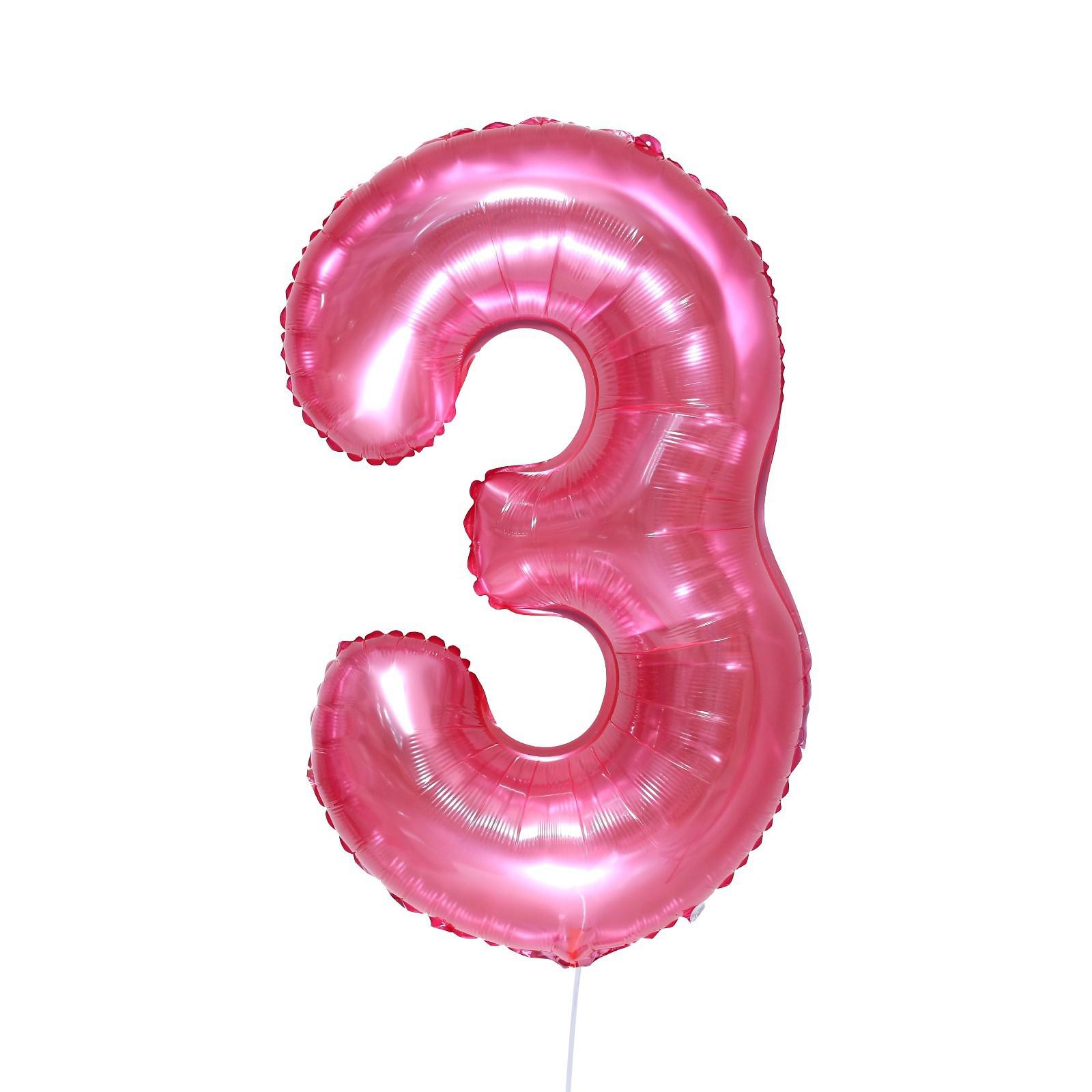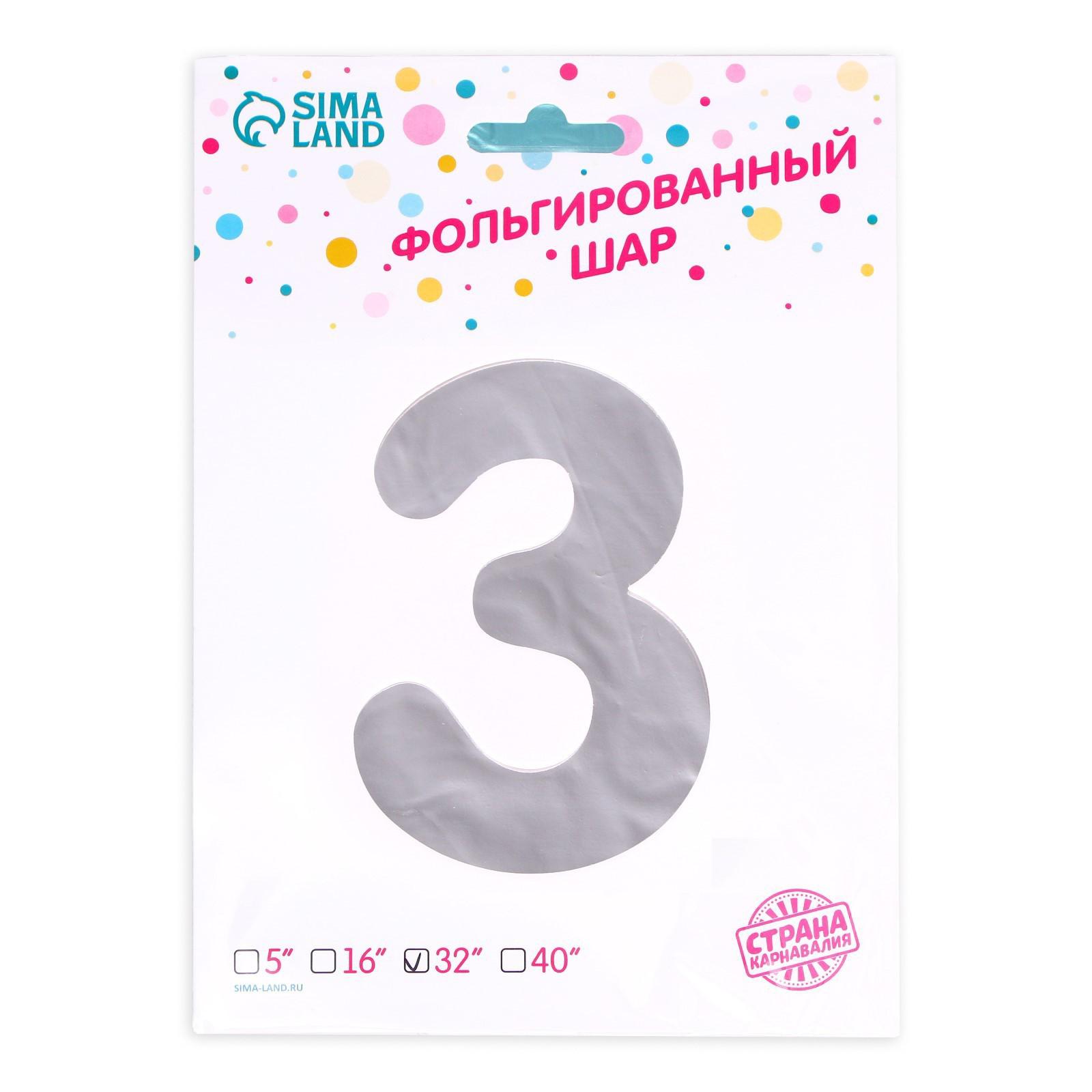 Шар фольгированный 32" «Цифра 3», цвет прозрачно-розовый