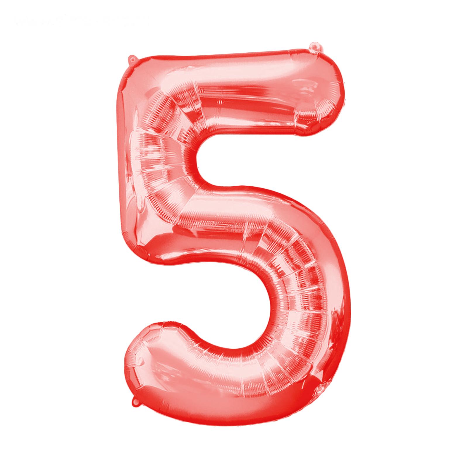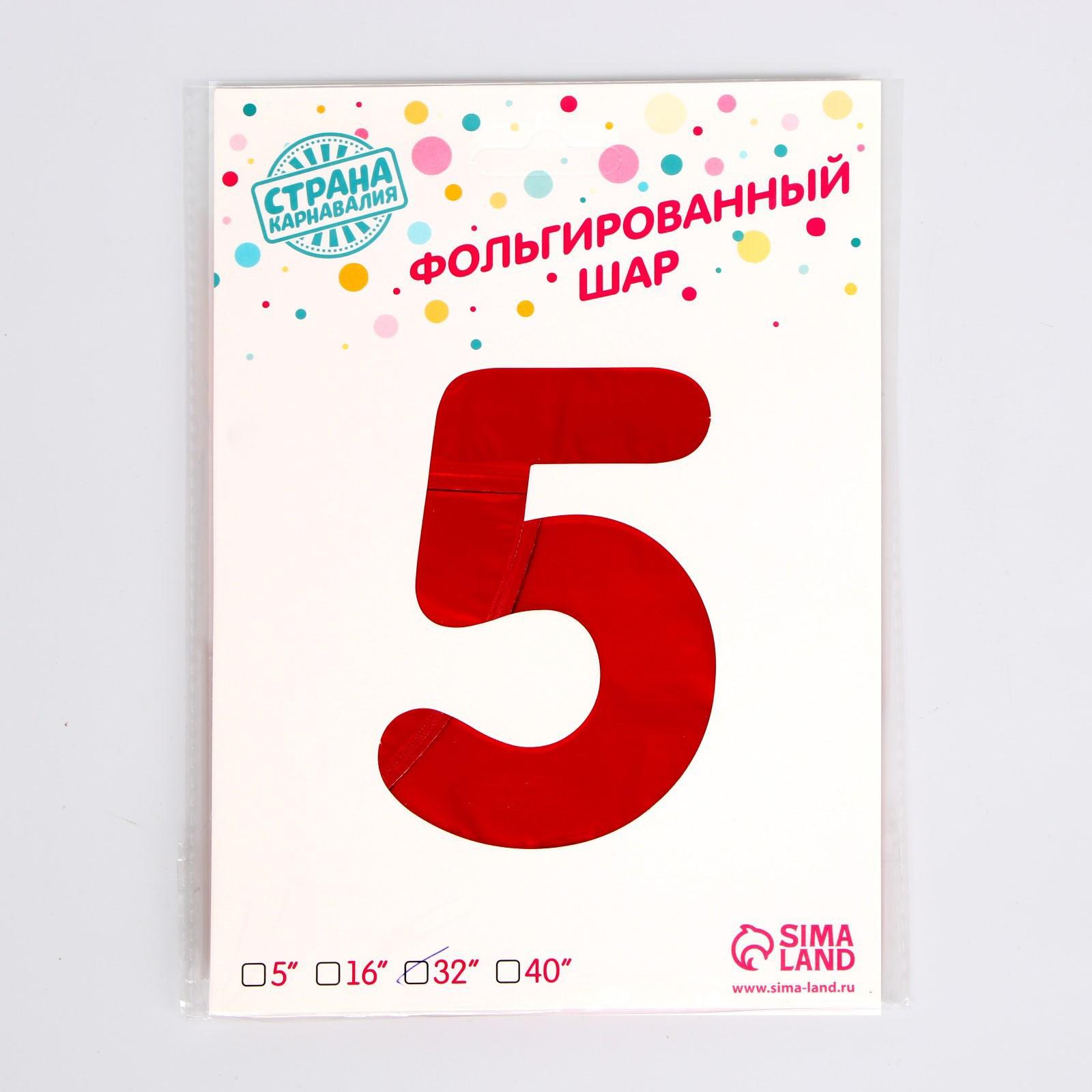 Шар фольгированный 32" Цифра 5, индивидуальная упаковка, цвет красный