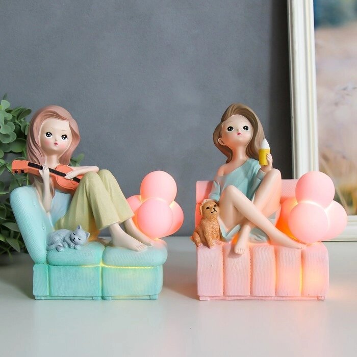Сувенир полистоун свет "Девчонка на диване с гитарой/пёсиком" МИКС 13х7,5х16 см