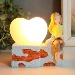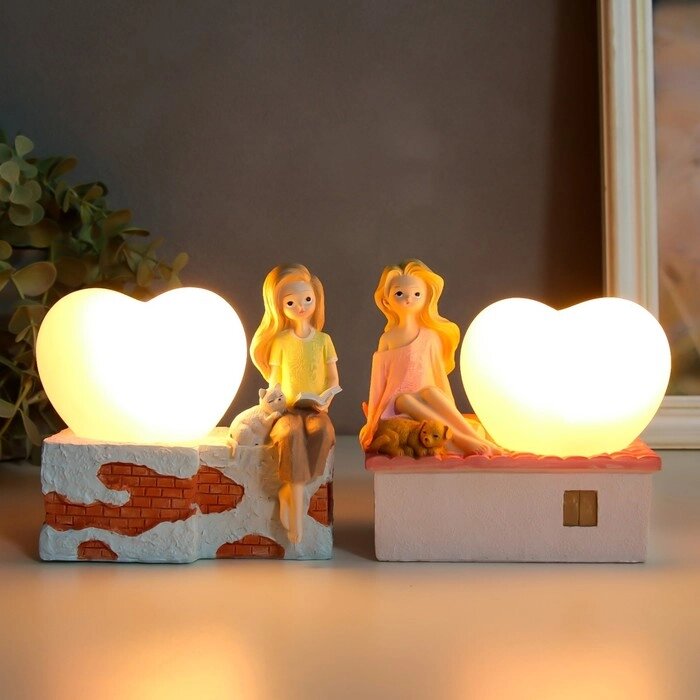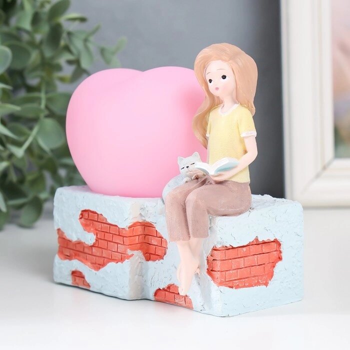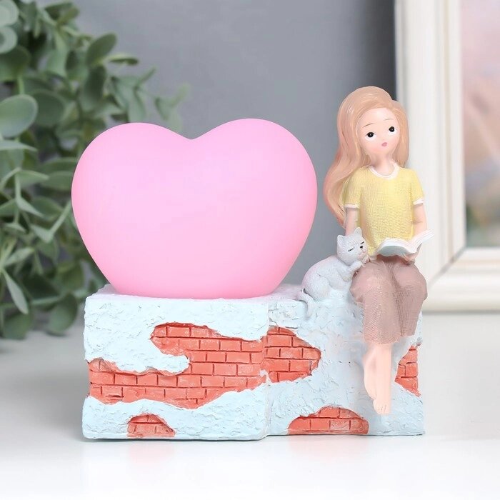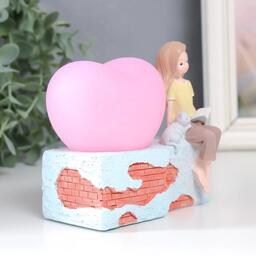 Сувенир полистоун свет "Девчонка на крыше с котёнком и сердцем" МИКС 11х5,5х11 см