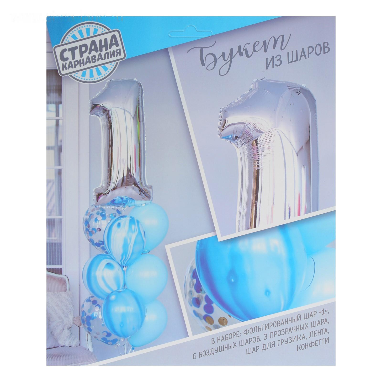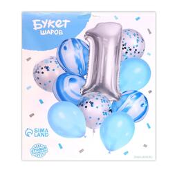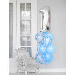 Фонтан из шаров "1 годик", для мальчика, латекс, фольга, 10 шт.