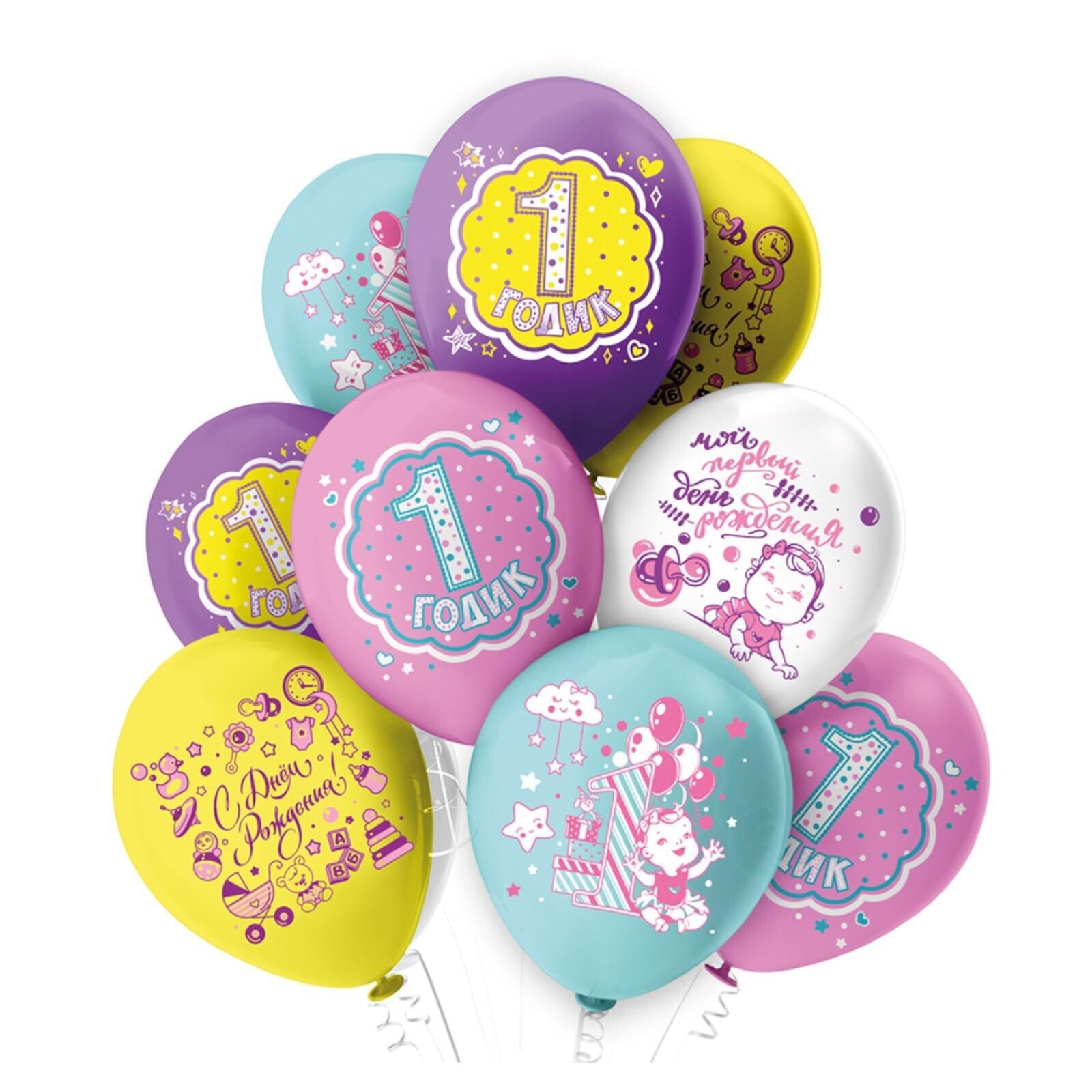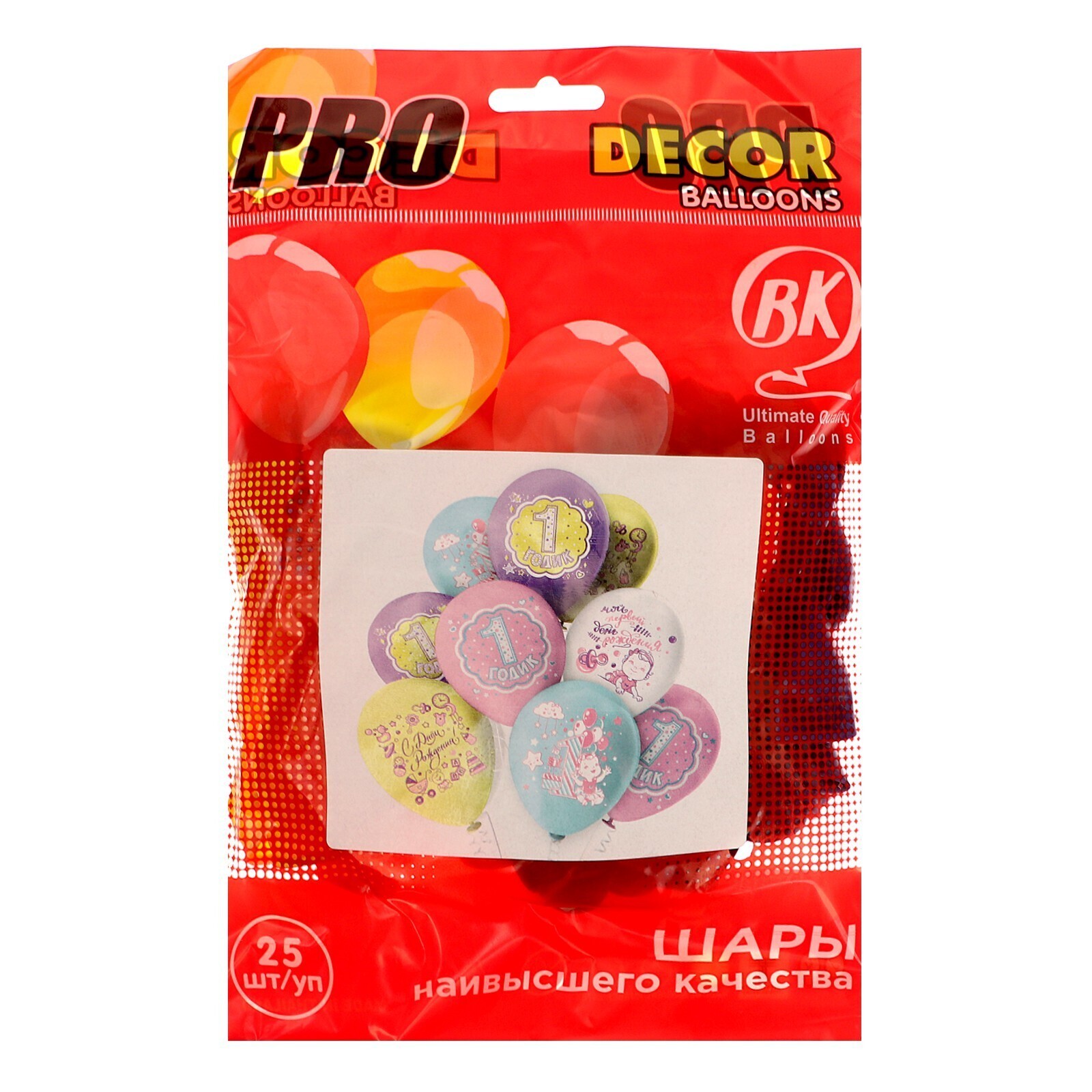 Шар латексный 12" «С ДР! 1 годик! Девочка!», пастель, 1-сторонний, набор 25 шт., МИКС
