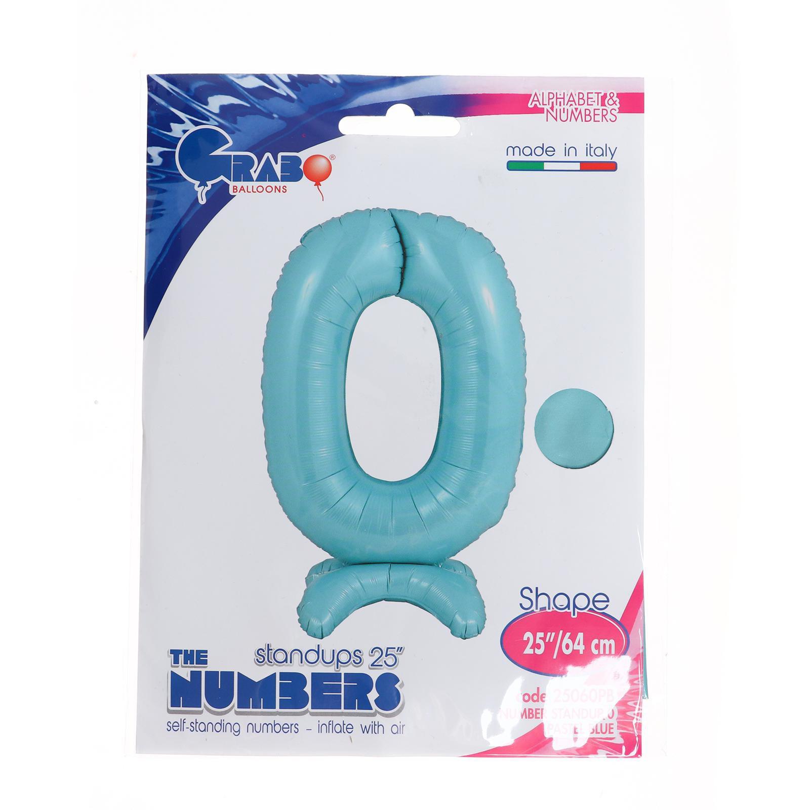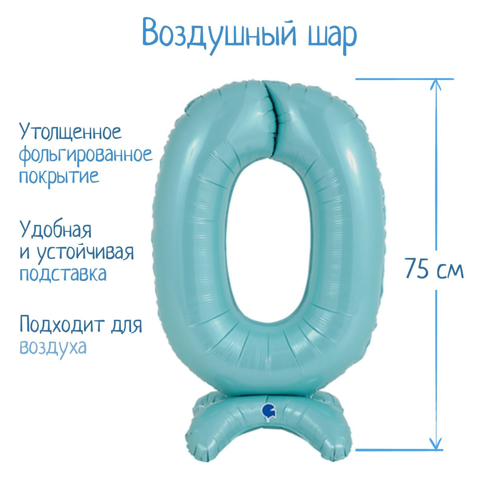 Шар фольгированный 25" «Цифра 0», на подставке, для воздуха, цвет пастельно-голубой