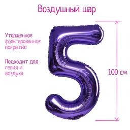 Шар фольгированный 40" «Цифра 5», цвет сиреневый, 1 шт.