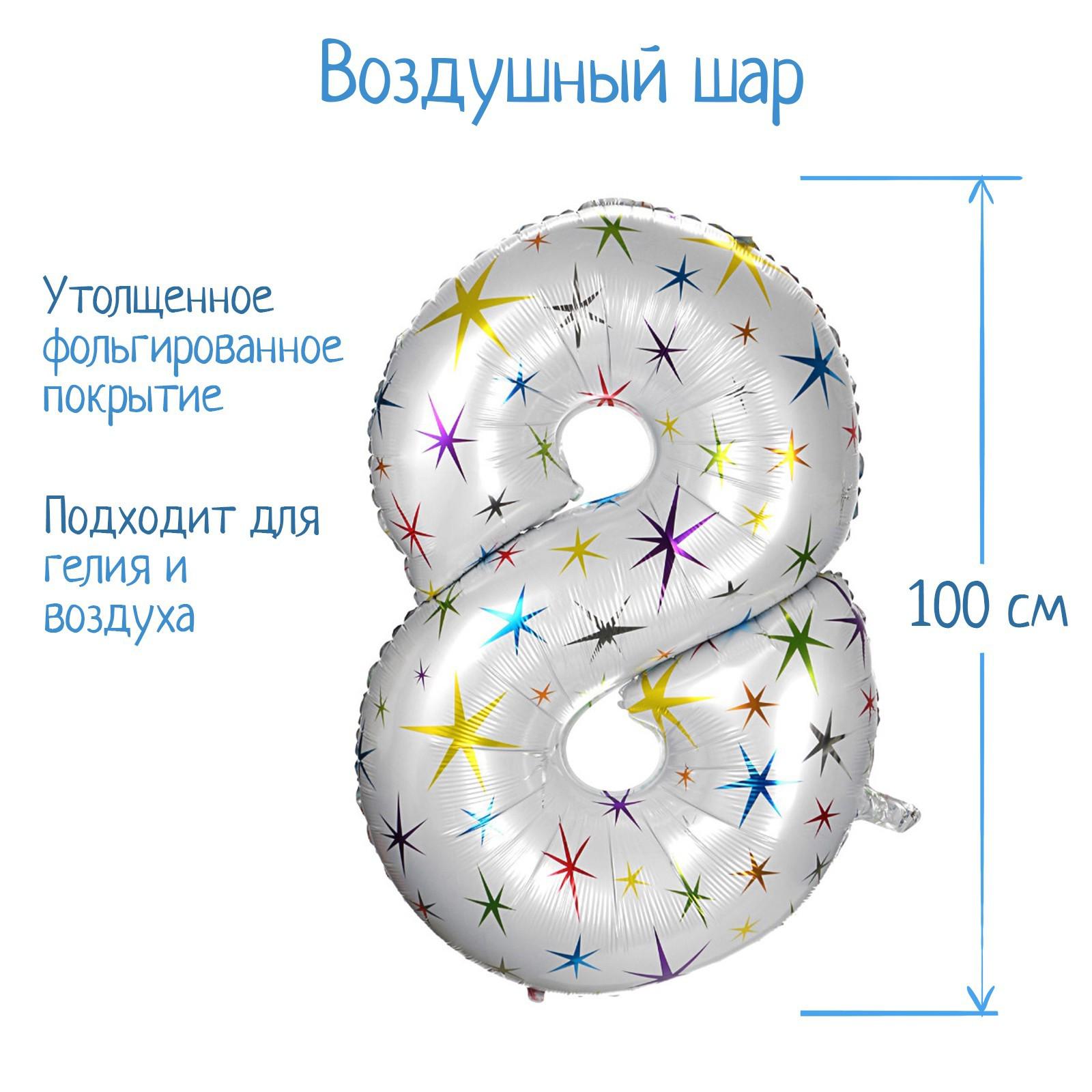 Шар фольгированный 40" «Цифра 8», разноцветные звёзды