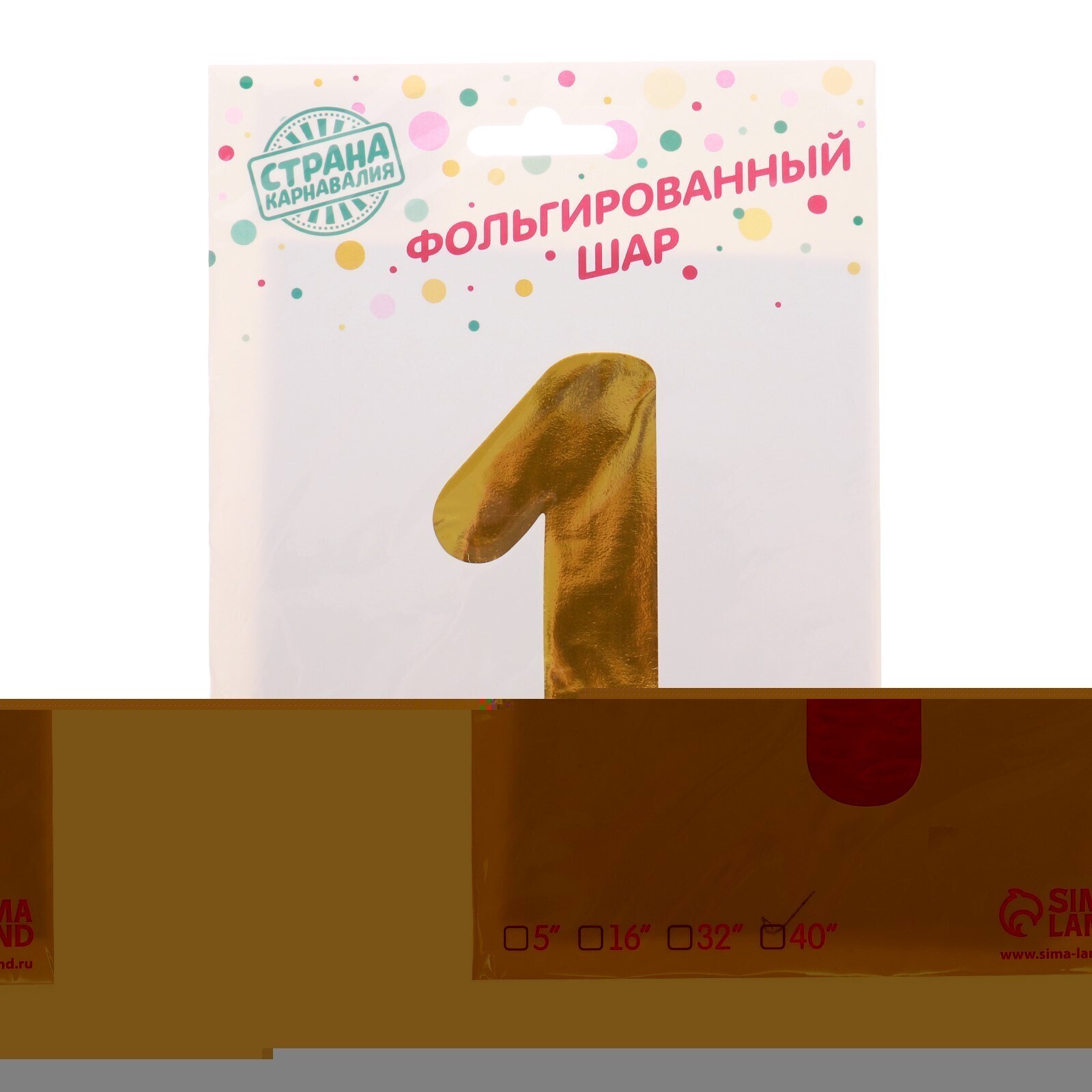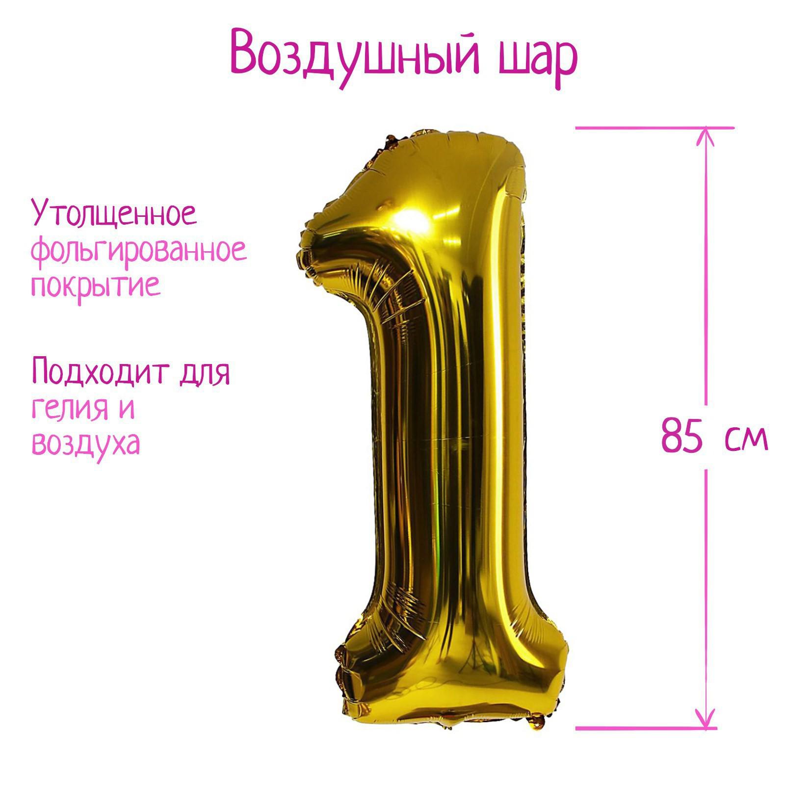 Шар фольгированный 40" «Цифра 1», 1 шт., цвет золотой