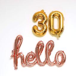 Шар фольгированный 16" Hello «30», буквы, цвет роза-голд