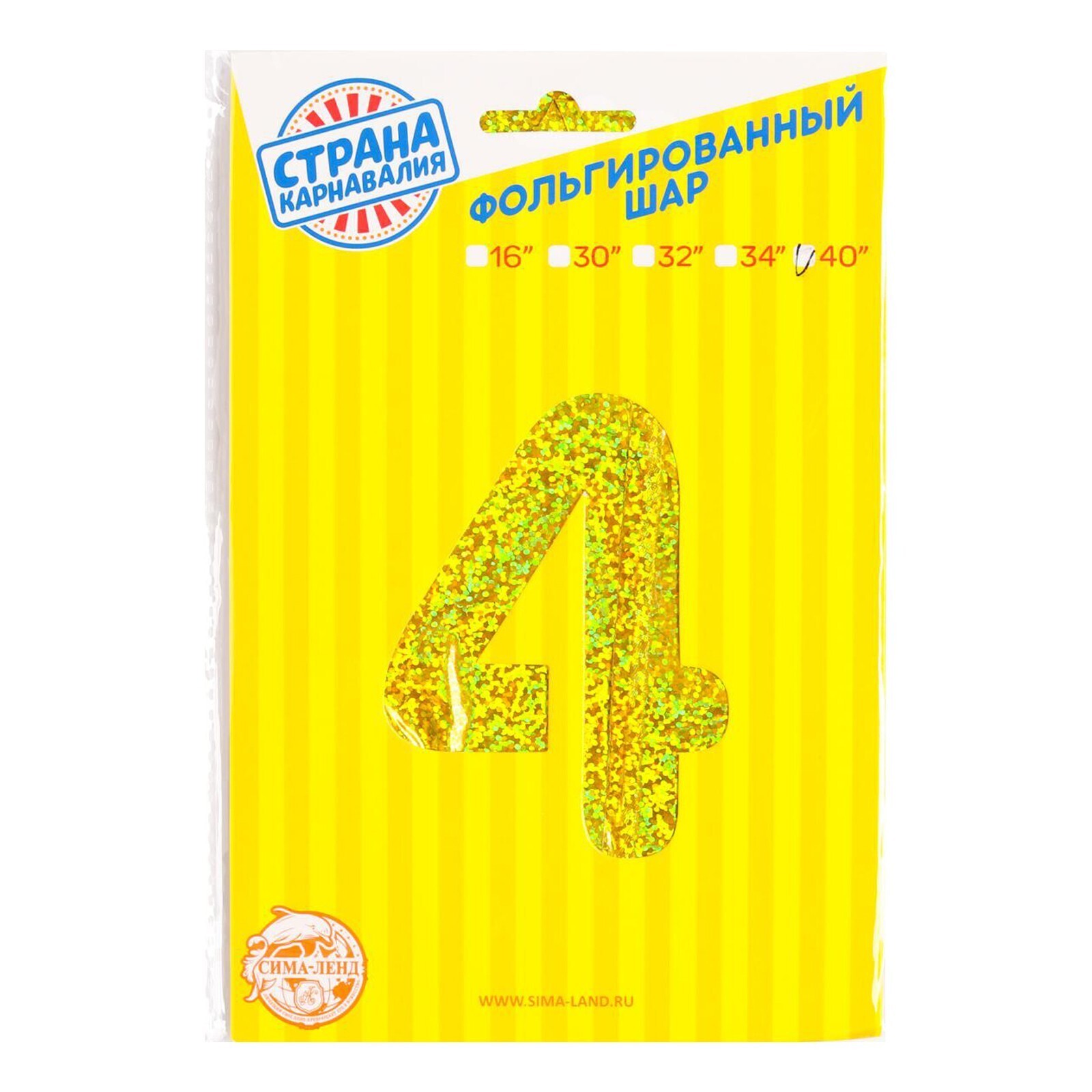 Шар фольгированный 40" «Цифра 4», голография, золото