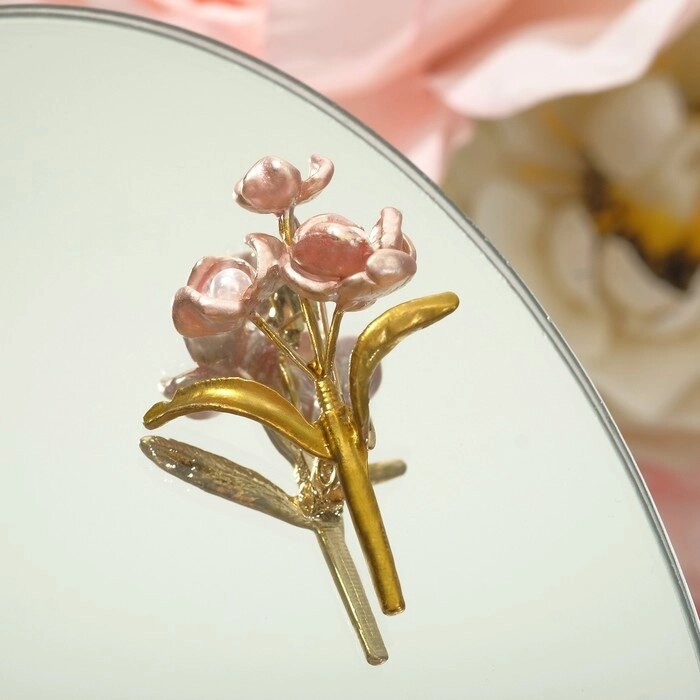 Брошь "Букетик" простой, цвет зелёно-розовый в золоте