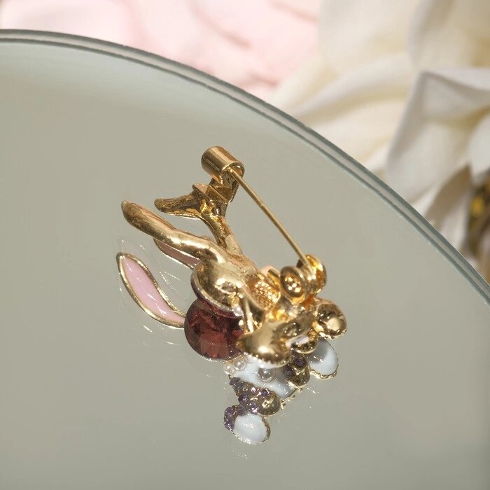 Брошь "Кролик" драгоценность, цвет бело-розовый в золоте