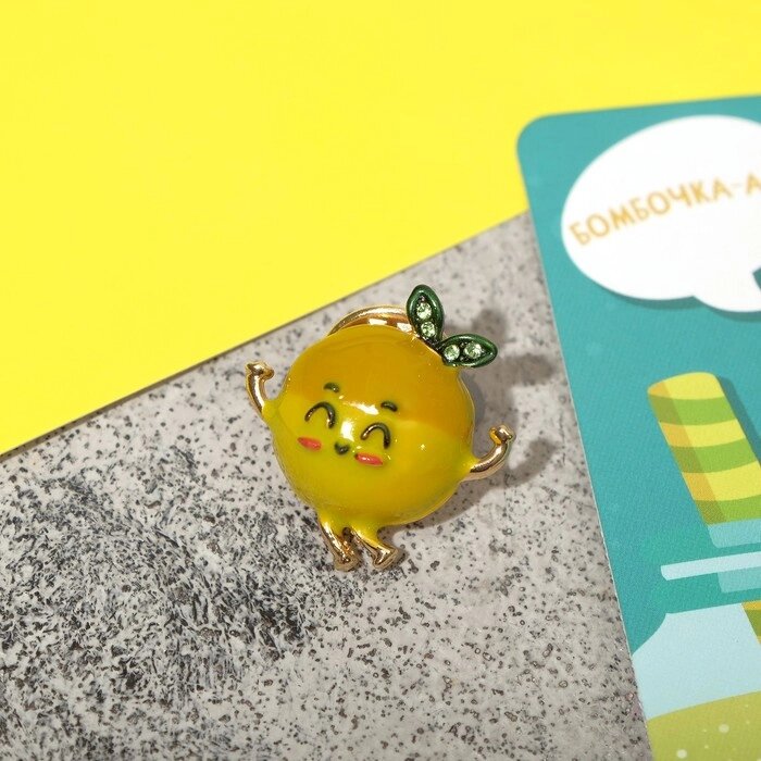 Значок "Лимон" радостный, цвет жёлто-зелёный в золоте
