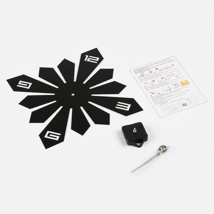 Часы - наклейка "Геометрическое солнце", 40 х 40 см, 1 ААА, черные