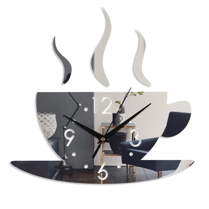 Часы - наклейка "Аромат кофе", 28 х 28 см, 1 ААА, серебро